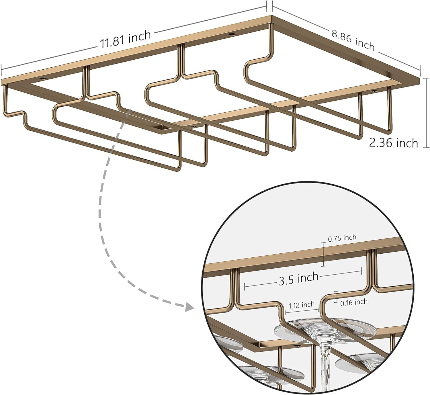- ๐ทSize: Length: 11.8 inch x Width: 9 inch x Height: 2.7 inch. Pls make sure our wine glass rack is suitable for your cabinet.