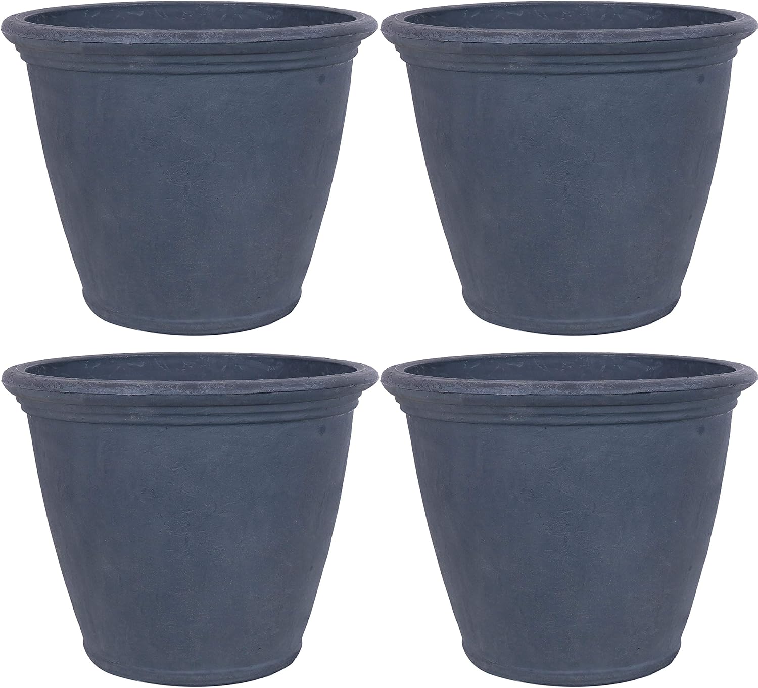 Sunnydaze 24-Inch Anjelica Large Plastic Pot for Plants - Outdoor Polyresin Round Planter with Drillable Drainage Holes - Slate - 4pk