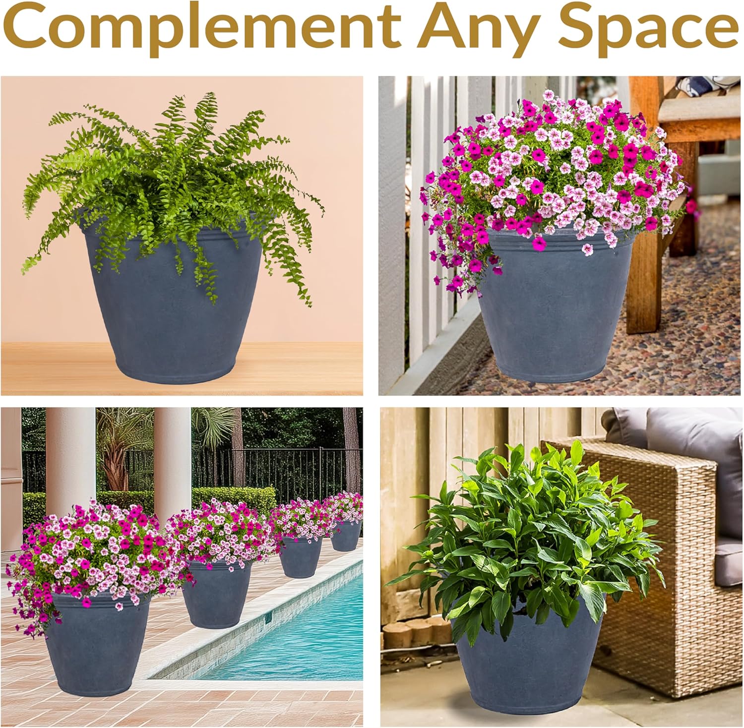 Sunnydaze 24-Inch Anjelica Large Plastic Pot for Plants - Outdoor Polyresin Round Planter with Drillable Drainage Holes - Slate - 2pk