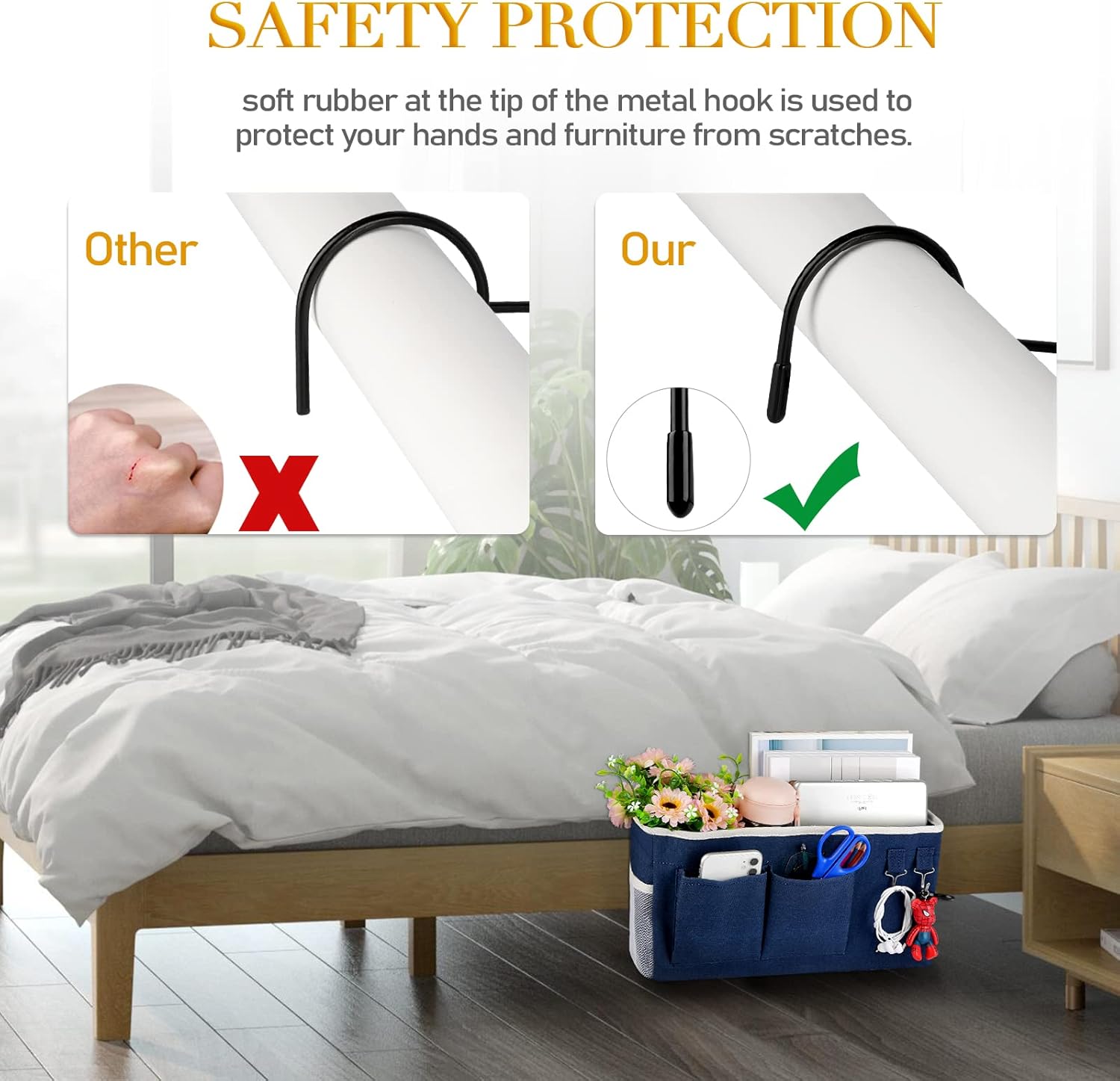- 【Full-scale Encirclement】Unlike other similar bedside storage bag where only part of the iron frame is covered, the metal frame on the top and inside of our bedside pocket caddy is completely covered. The whole bag is fixed to prevent tilting and is more stable and enduring.