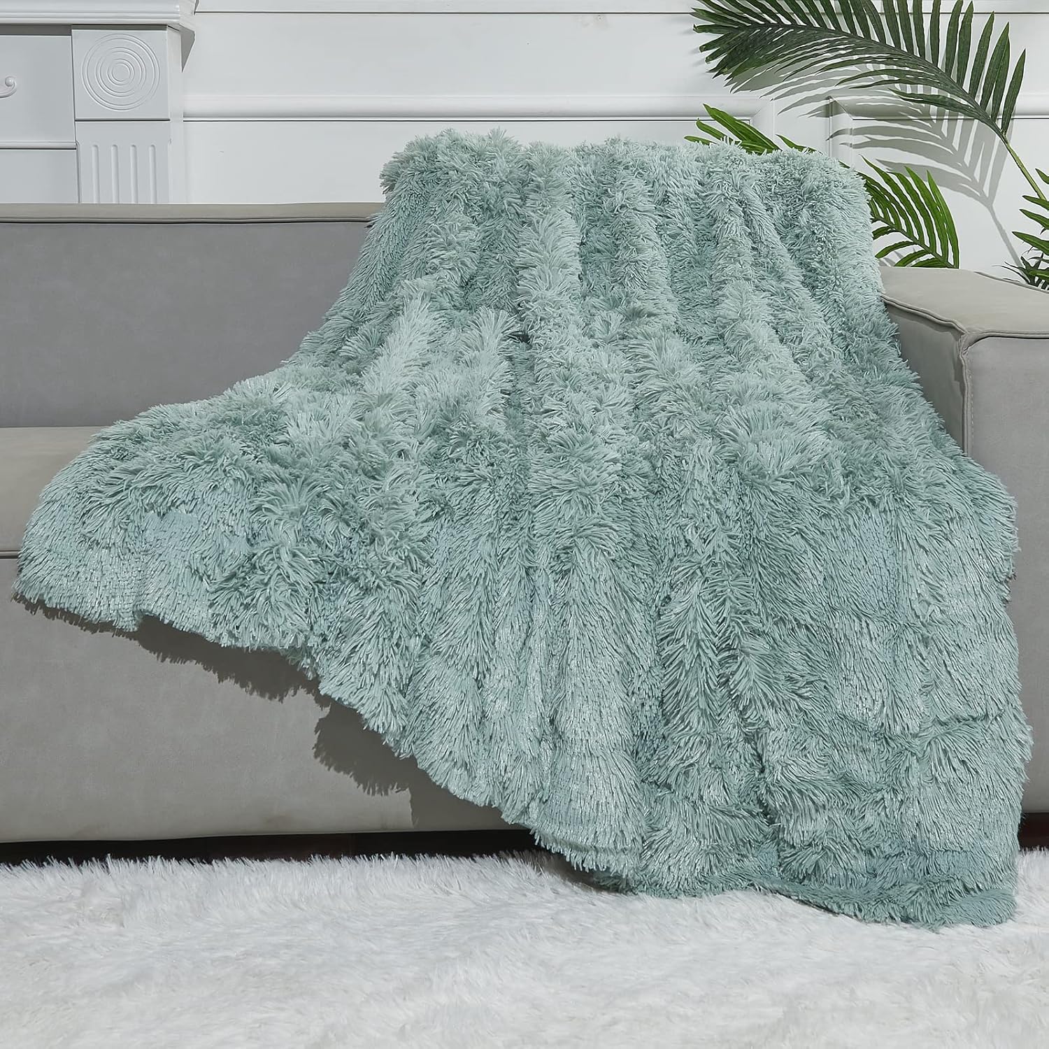 GONAAP Fuzzy Faux Fur Throw Blanket Twin Size Ice Blue Super Soft Cozy Plush Fuzzy Shaggy Blanket for Couch Sofa Bed (Ice Blue, Twin(60"x80"))