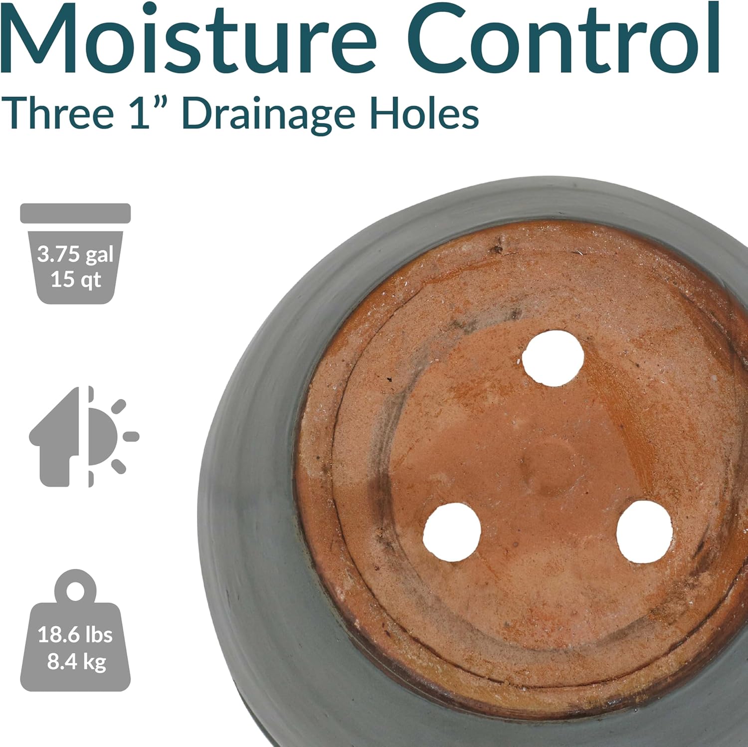 - LARGE SIZE FOR GROWING PLANTS: This large plant pot features a spacious top diameter and 3.75-gallon soil capacity that provides ample space for plants to grow. The planter has a 14.5” outer top diameter (12.75” inner diameter), a 9” outer base diameter (7” inner base diameter), an 11.25” outer H (11” inner H), and weighs 18.6 lbs.