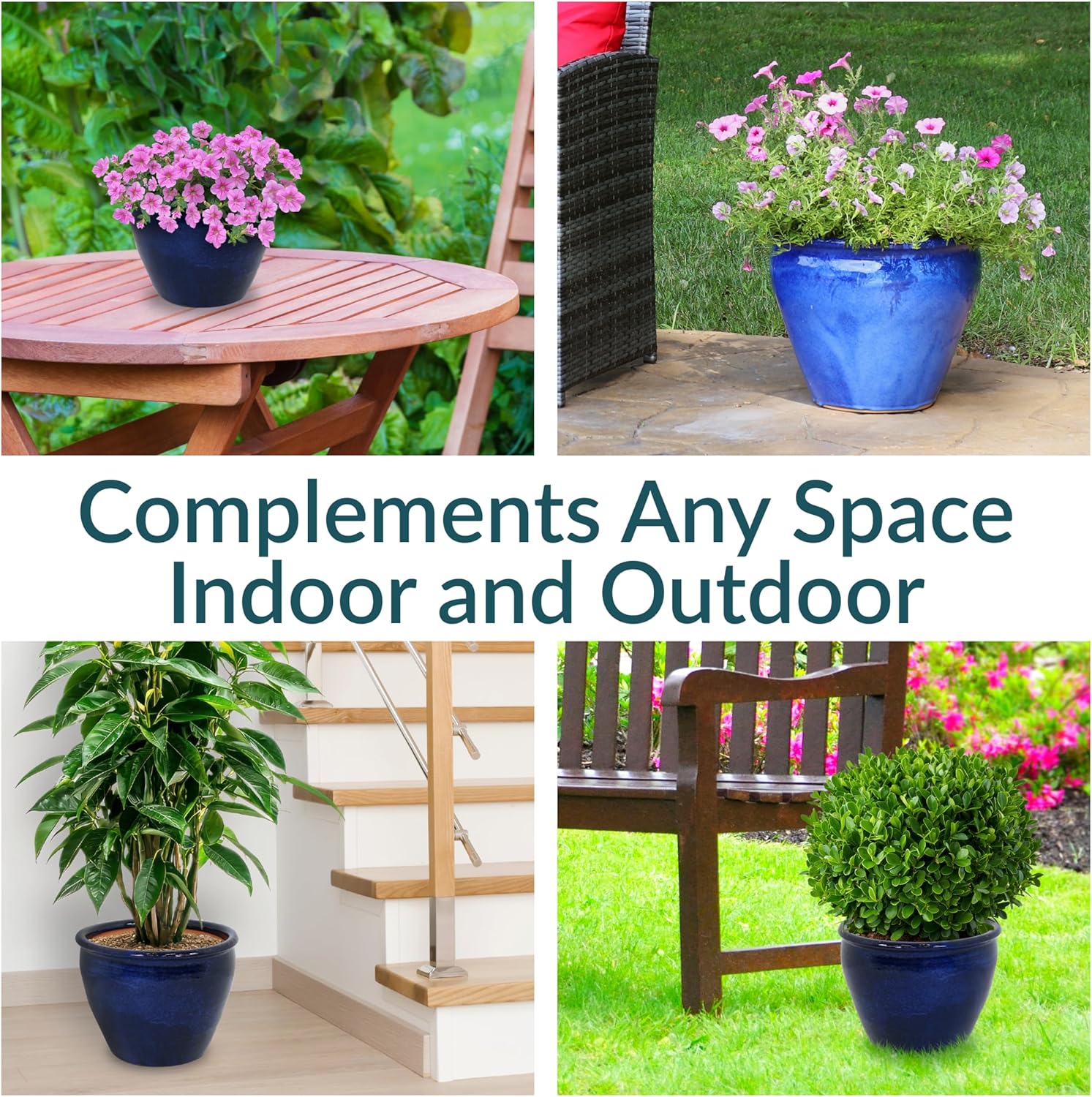 - DESIGNED FOR BEAUTY AND DURABILITY: This outdoor plant pot is crafted with a rich, hand-painted glazed finish that is kiln-fired for a classic, shining appearance. Subtle variations in color highlight the artisanal glazing process, making each piece truly unique. The durable ceramic construction offers natural UV and frost resistance, while its heavy weight adds stability to outdoor arrangements, keeping the planter upright in windy conditions.