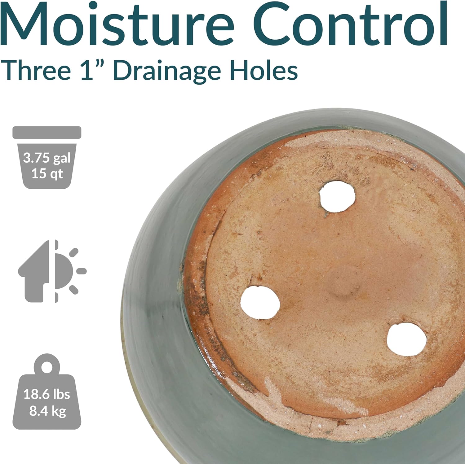 - LARGE SIZE FOR GROWING PLANTS: This large plant pot features a spacious top diameter and 3.75-gallon soil capacity that provides ample space for plants to grow. The planter has a 14.5” outer top diameter (12.75” inner diameter), a 9” outer base diameter (7” inner base diameter), an 11.25” outer H (11” inner H), and weighs 18.6 lbs.