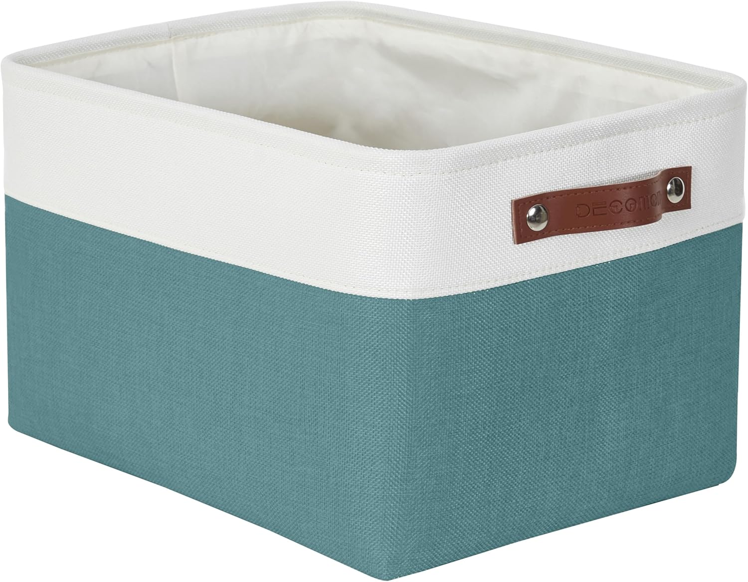 - Durable Design: DECOMOMO's baskets feature a sturdy metal frame, extra thick EVA exterior, polyester interior, 2.5mm MDF fiberboard bottom, and faux leather handles capable of holding up to 15 lbs.
