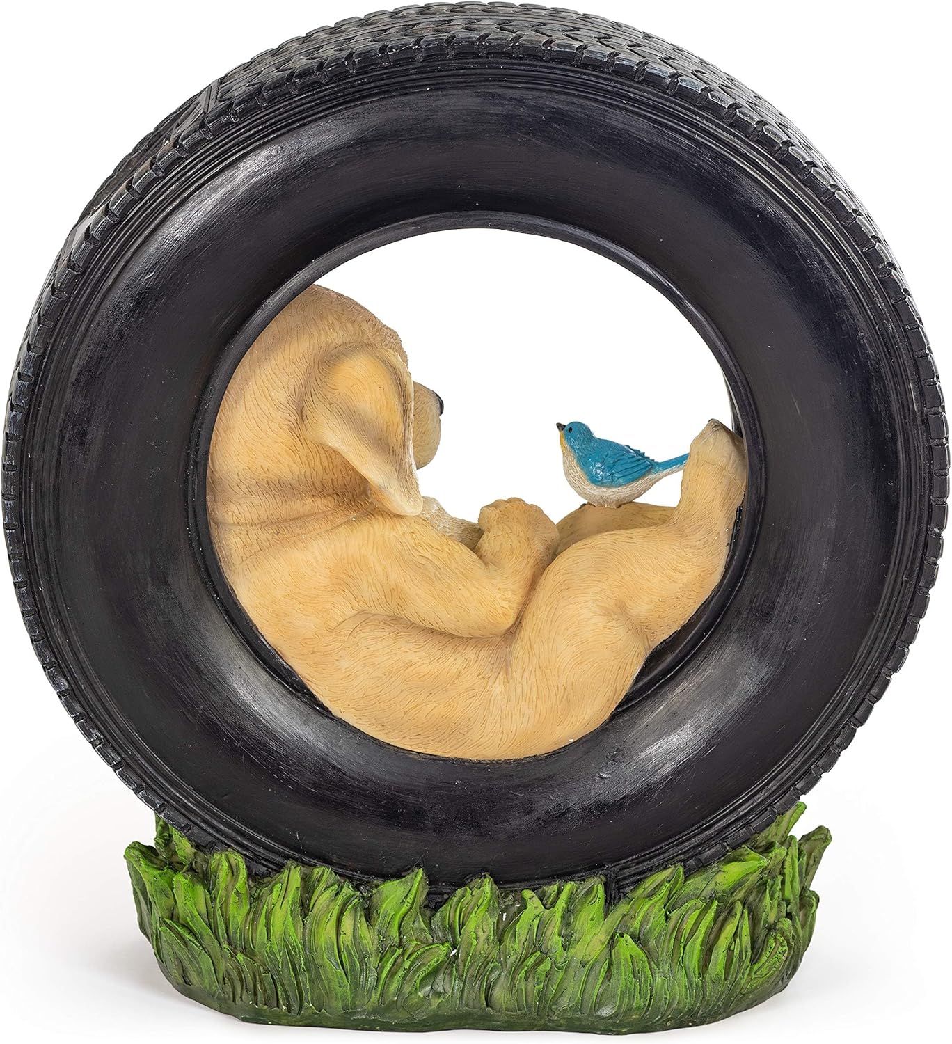 VP Home Chillaxing Welcome Puppy Dog Solar Powered LED Garden Light Welcome Chillax Puppy Statue Outdoor Funny Figurine Decor for Patio, Yard, Lawn