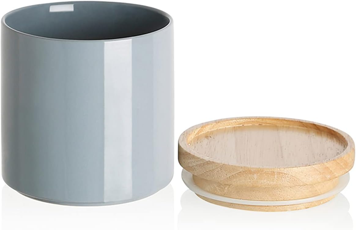 Sweejar Kitchen Canisters Ceramic Food Storage Jar, Stackable Containers with Airtight Seal Wooden Lid for Serving Coffee Bean, Flour, Tea, Spice and More - 39 Fl Oz (Gray)