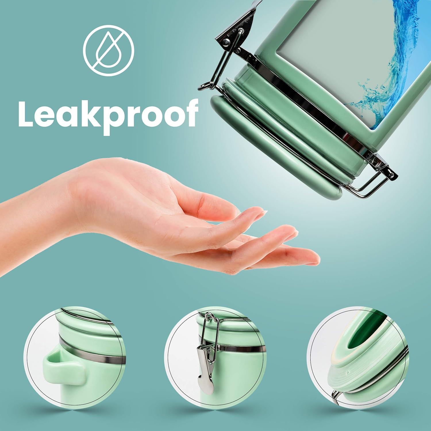 Home Intuition 4-Piece Ceramic Kitchen Canisters Set, Airtight Containers with Wooden Spoons Reusable Chalk Labels and Marker for Sugar, Coffee, Flour, Tea (Mint)