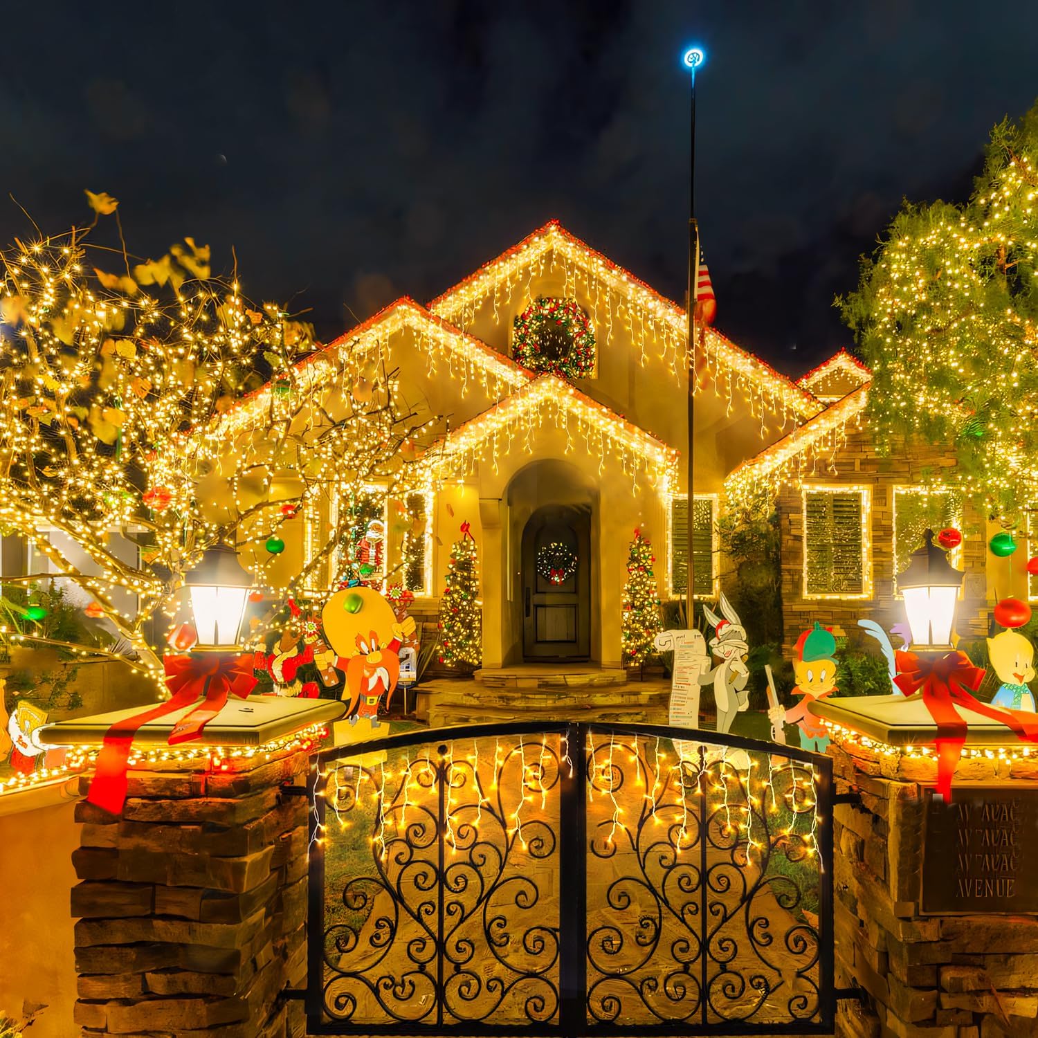 - 【Super Long & Bright Icicle Christmas Lights】800 LED warm white icicle lights with 160 drops, 57.92ft lights long and 9.84ft extension cord. The perfect length to wrap the eave of the front porch. It is the best choice for your outdoor Christmas lights. Drop cords of different lengths meet your Christmas outdoor and indoor decoration needs.