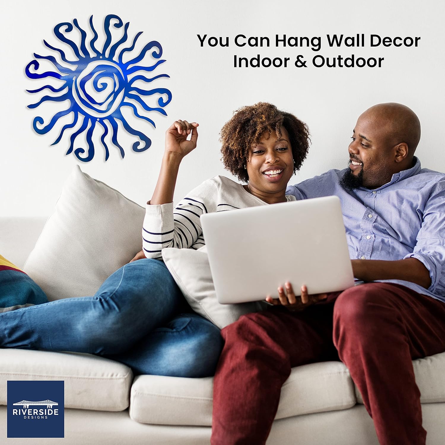 Riverside Designs Wacky Sun Metal Wall Art Indoor/Outdoor Decor - 18" Blue Rust Proof Wall Sculpture - Made in USA - Ideal for Bedroom, Garden, Home, Patio and Farmhouse