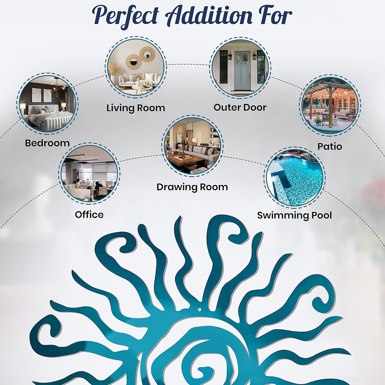 Wacky Sun Metal Wall Art Indoor/Outdoor Decor - 18" Teal Rust Proof Wall Sculpture - Made in USA - Ideal for Bedroom, Garden, Home, Patio and Farmhouse