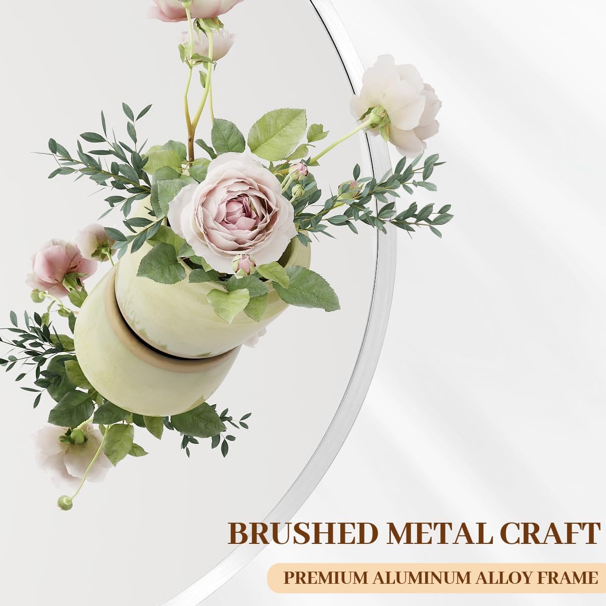 - Modern Brushed Frame Design: 24-inch white circle mirror is crafted of an aluminum alloy metal sleek frame which doubles as a protective bumper, making it ideal for high-traffic areas as bathroom mirror, entrance mirror, vanity mirror, living room mirror