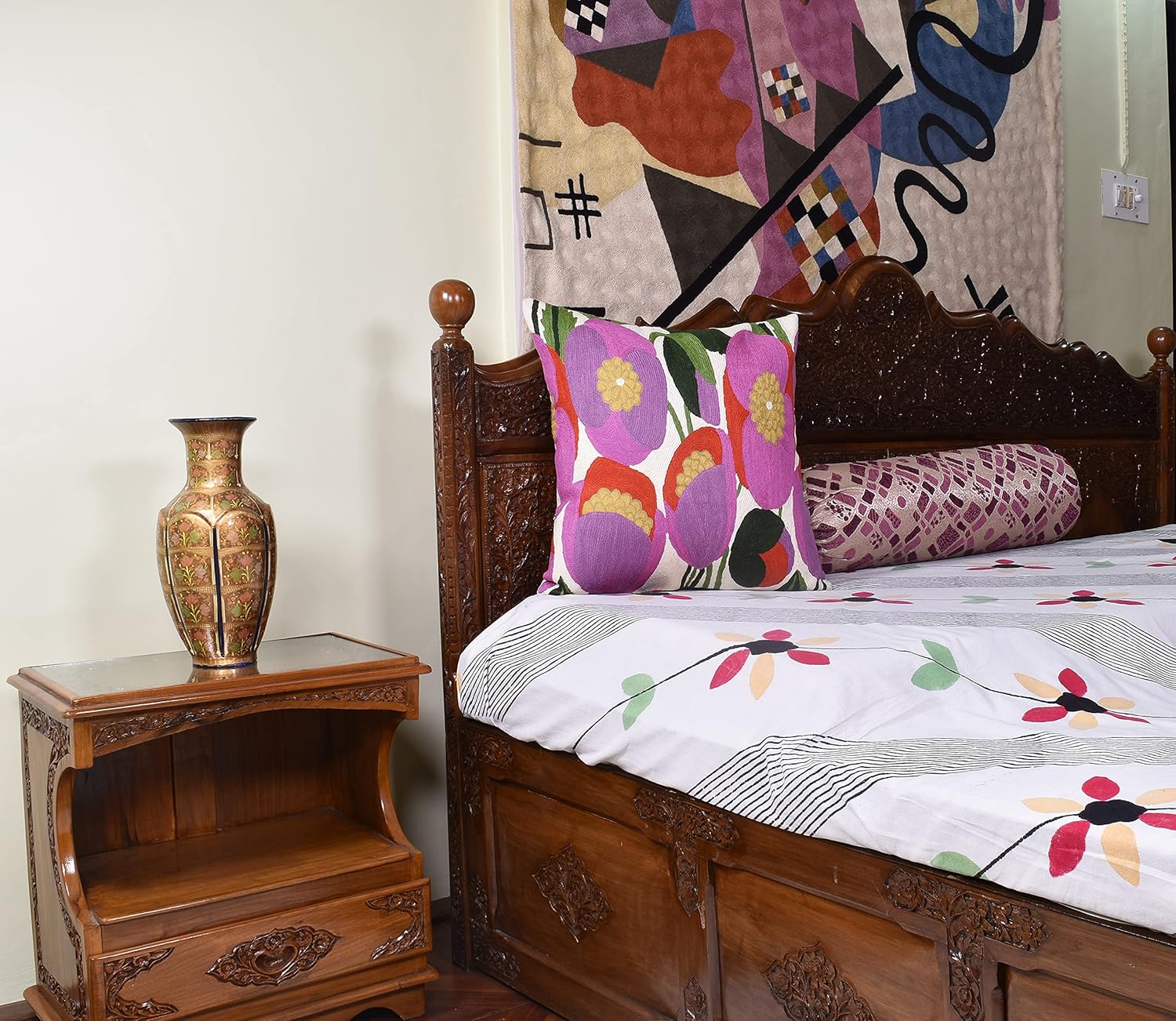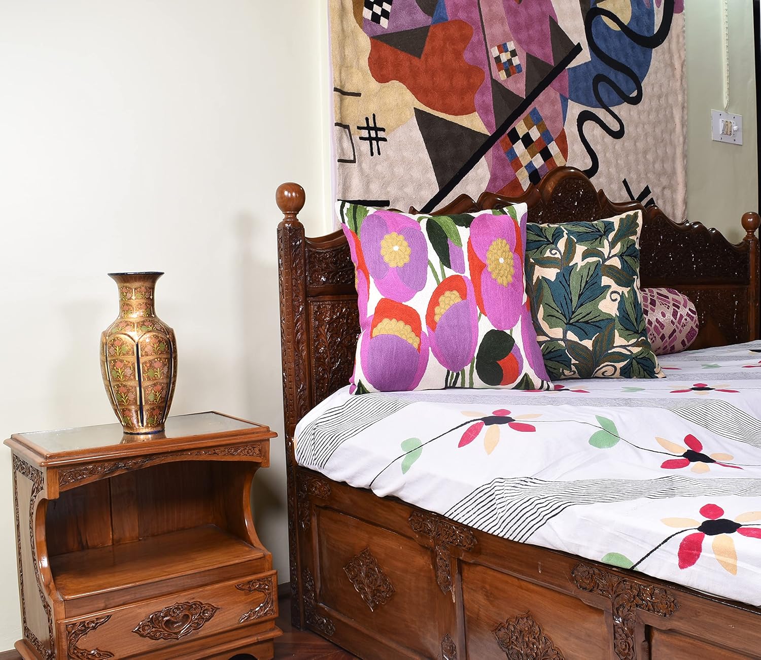 - ๐ FLORAL THROW PILLOW COVER - HAND EMBROIDERED: These colorful flower pillows are inspired from contemporary modern floral art designs and are hand embroidered in soft wool to perfection, stitch by stitch, by the finest artisans, creating an extraordinary all modern floral design pillow for your home decor. A close-up view of this all modern flower cushions allows you to see the amazing fine chain-stitch hand embroidery that covers the whole front side of this floral pillowcase.