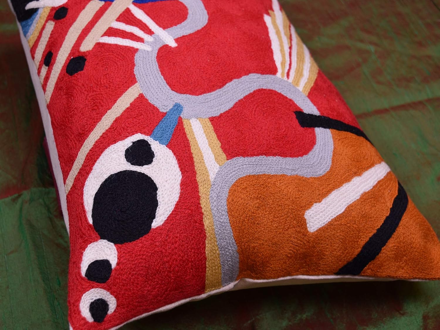 - ❤ REFRESH YOUR HOME OR OFFICE DECOR: These unique abstract Lumbar Red Kandinsky Intuitive Accent throw pillow covers would bring together the artistic elements of any room, creating a harmonious design and perfect air of sophistication. Pillow Cover Size: 14" x 20". Pillow Cover is not Reversible, Backing: Canvas (See additional Pictures). The whole front of this contemporary pillow cover is covered with hand embroidery.