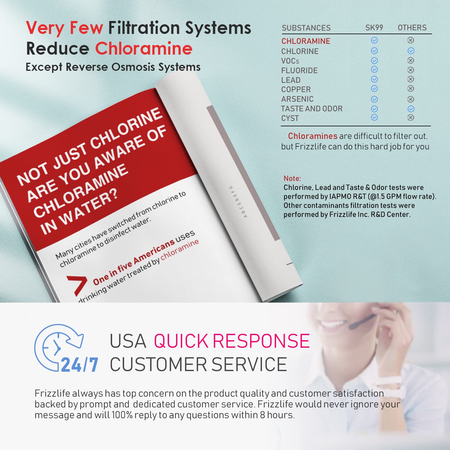 Frizzlife Under Sink Water Filter System SK99-NEW, Direct Connect, NSF/ANSI 53&42 Certified 0.5 Micron Carbon Block, Remove Lead, Chlorine, Chloramine, Fluoride, Odor & Bad Taste- Quick Change