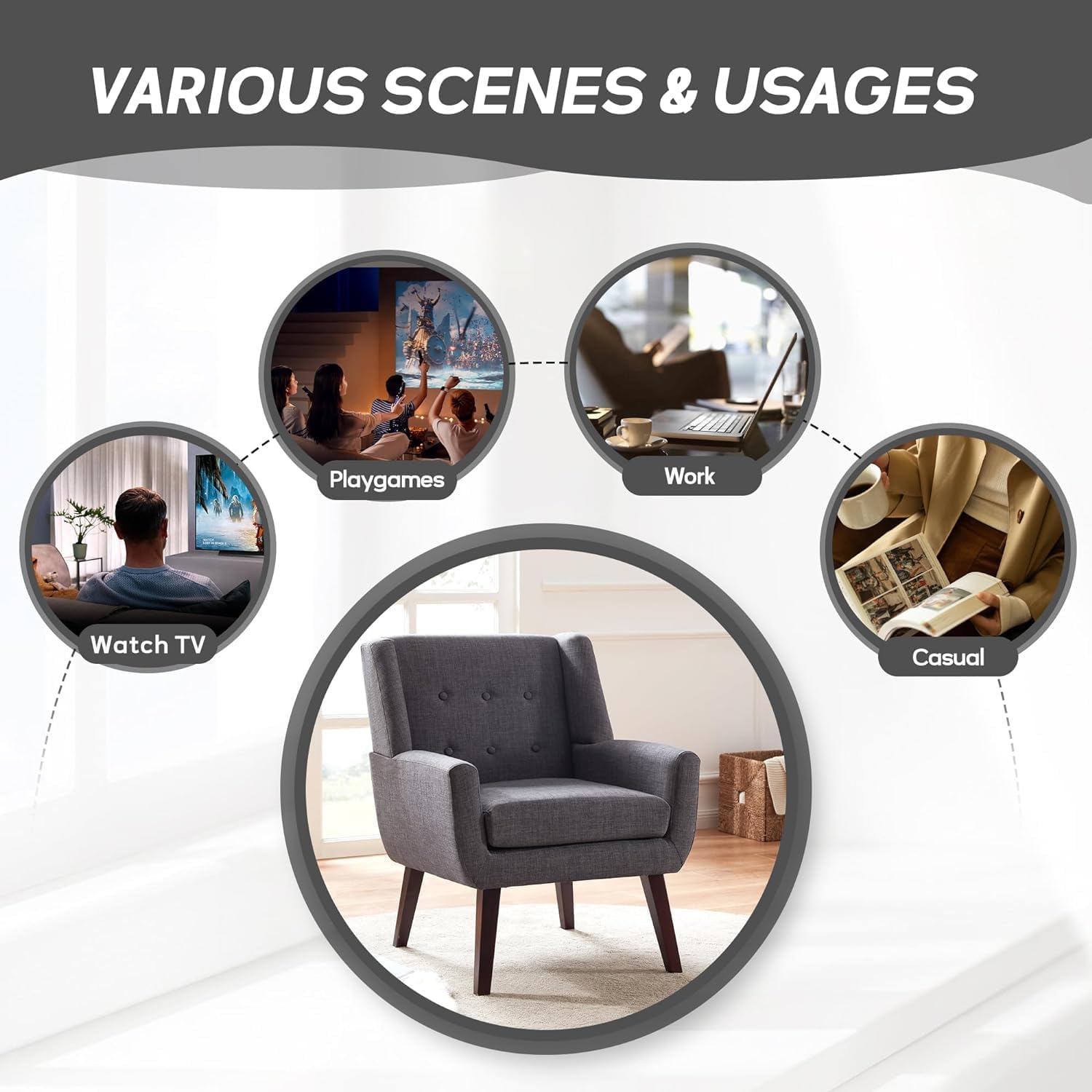 - Modern Style Design: The living room chair is designed with a simple and classic appearance to match any interior decoration style of your home. The tufted buttons of the living room chair back cushion are natural and the fabric is soft to the touch. Also available in six colors, adding a classic flair to your room is the versatile decorative chair you use