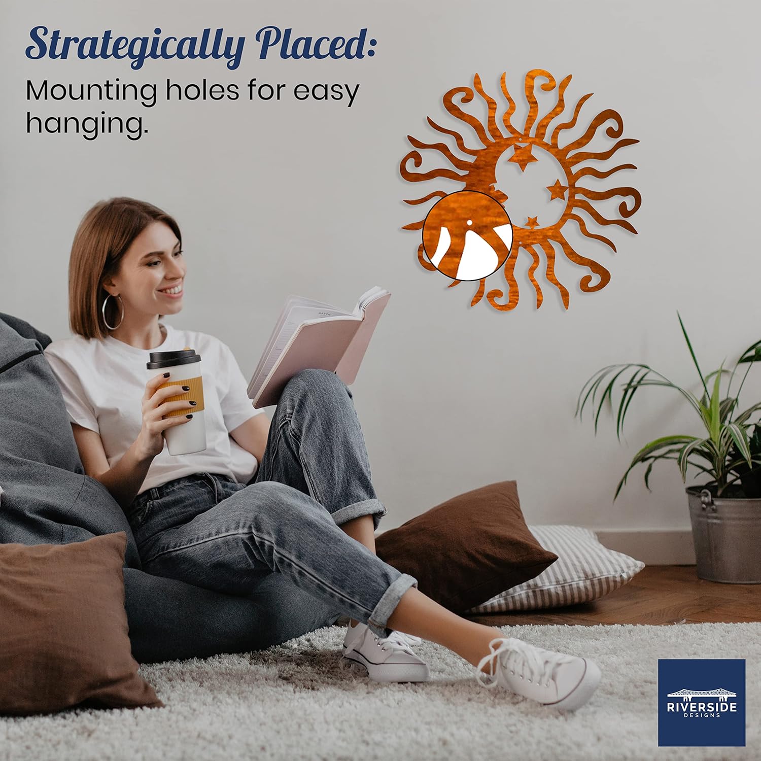 Riverside Designs Wacky Solar Moon Metal Wall Art Steel Outdoor Decor | Heavy-Duty and Waterproof | Made in USA (Copper, 24L x 24W)