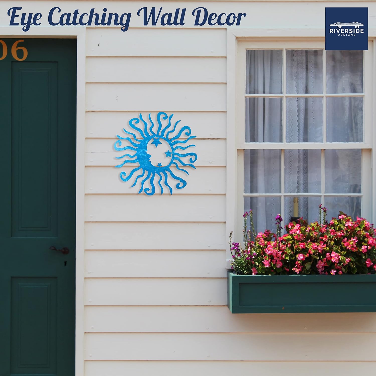 Riverside Designs Wacky Solar Moon Metal Wall Art Steel Outdoor Decor | Heavy-Duty and Waterproof | Made in USA (Teal, 12L x 12W)