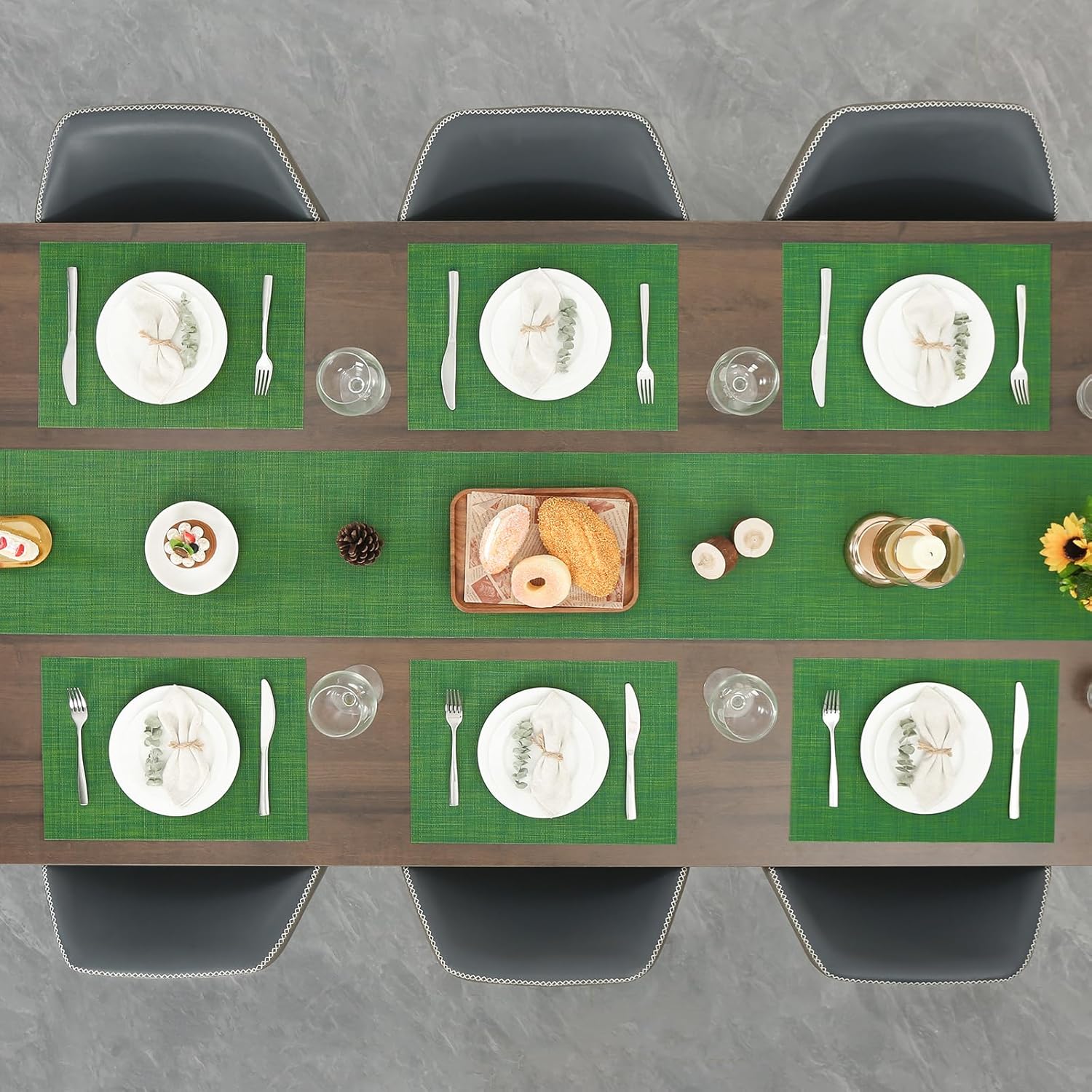 Myir JUN Placemats Set of 8, Vinyl Woven Placemats Place Mats Indoor Set of 8 Washable Table Mats Non-Slip Place mats for Dining Table (Dark Green, Set of 8)