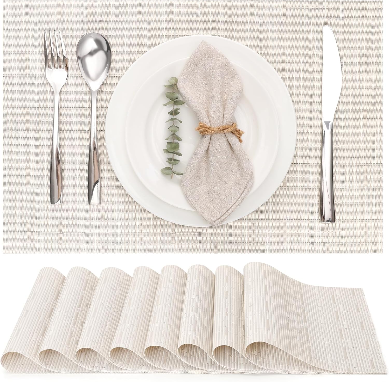 Myir JUN Placemats Set of 8, Vinyl Woven Placemats Place Mats Indoor Set of 8 Washable Table Mats Non-Slip Place mats for Dining Table (B-White, Set of 8)