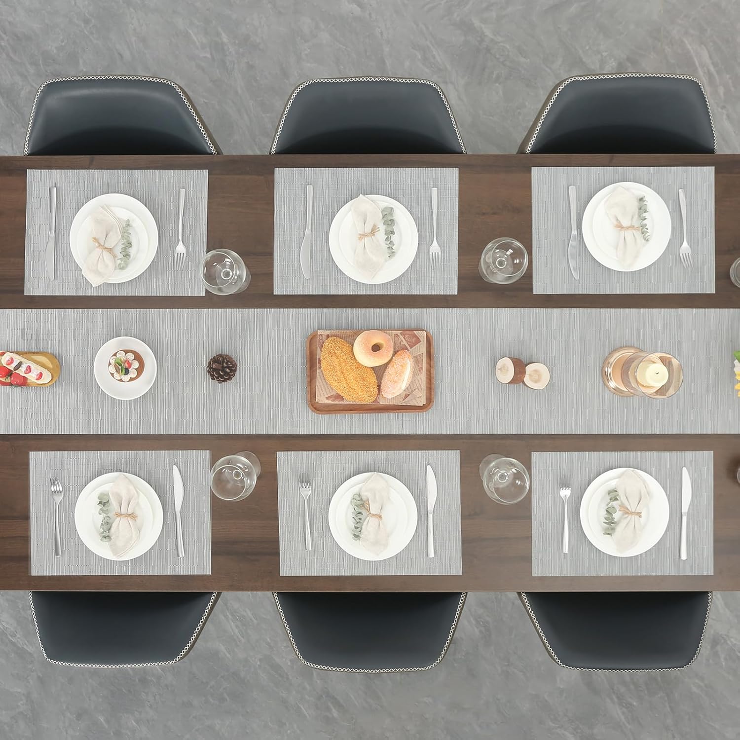 Myir JUN Placemats Set of 8, Vinyl Woven Placemats Place Mats Indoor Set of 8 Washable Table Mats Non-Slip Place mats for Dining Table (Silver, Set of 8)