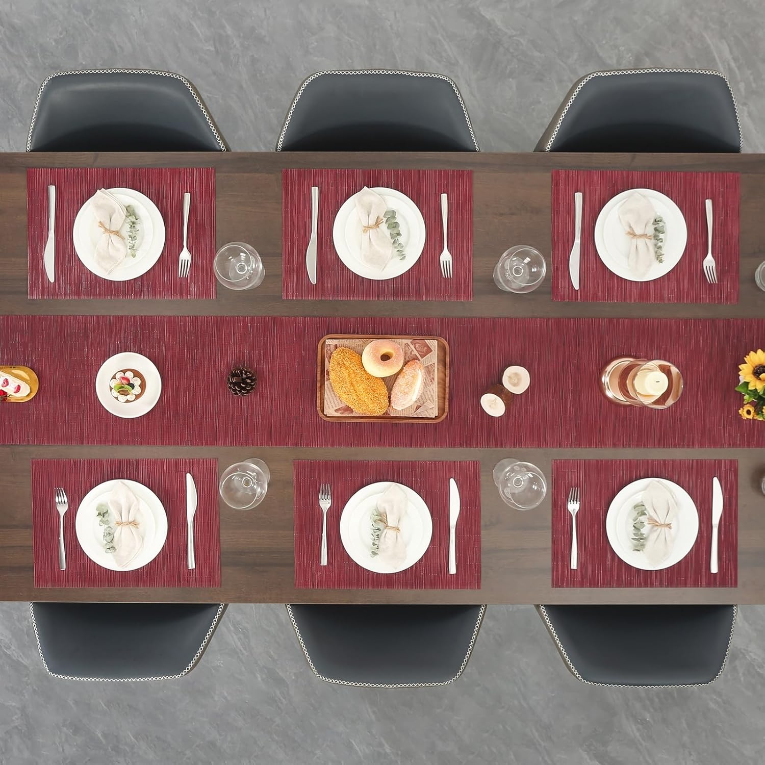Myir JUN Placemats Set of 8, Vinyl Woven Placemats Place Mats Indoor Set of 8 Washable Table Mats Non-Slip Place mats for Dining Table (Red, Set of 8)
