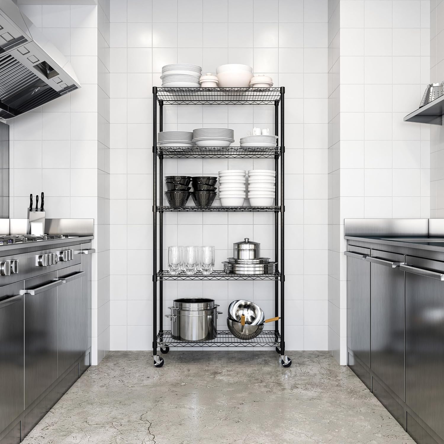 - 5 ADJUSTABLE SHELVES - 36" x 18" commercial-grade heavy-duty shelves are height adjustable at 1” increments.