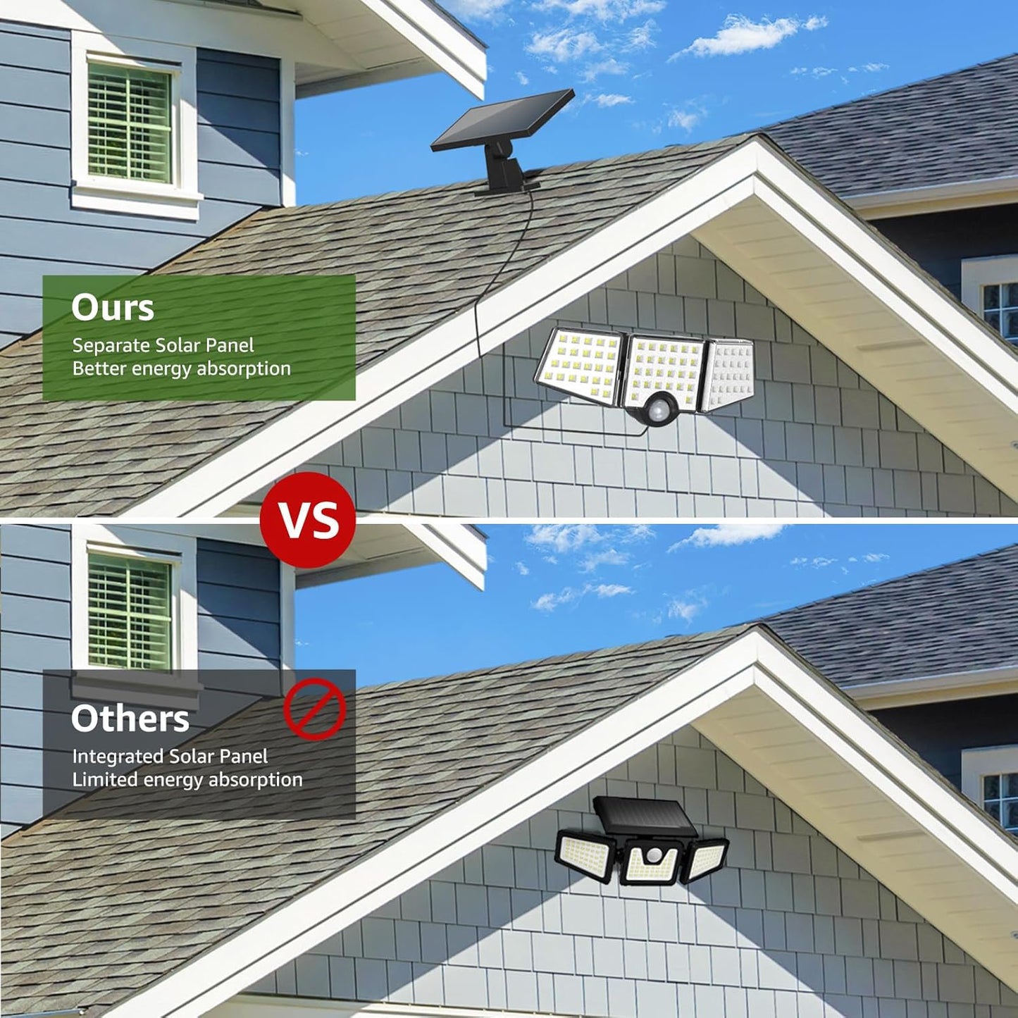 Lepro Solar Lights for Outside, WL5000 Motion Activated Security Lights, Separate Solar Panel, 3 Adjustable Head 270° Wide Lighting Angle, IP65 Waterproof Wall Lamp for Porch Yard Garage