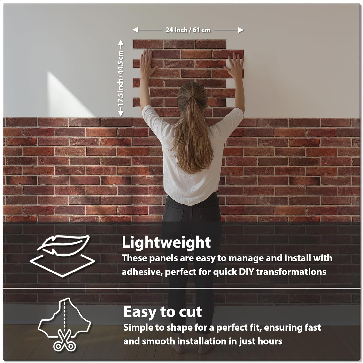 - CUSTOMIZABLE DESIGN: These versatile 3D faux brick panels can be easily cut and customized to fit any area, such as accent walls, allowing you to craft a personalized look that perfectly complements your space
