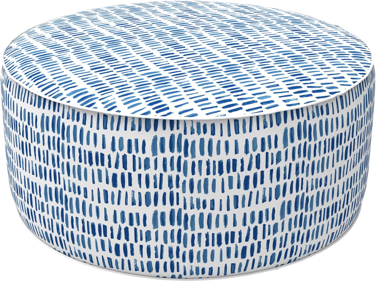 LVTXIII Outdoor Inflatable Ottoman Stool, Patio Water Repellent Footrest Stool with Handle, Portable Outside Round Ottoman for Patio Garden, Camping or Home Use, 21"x21"x9", Blue Pebble