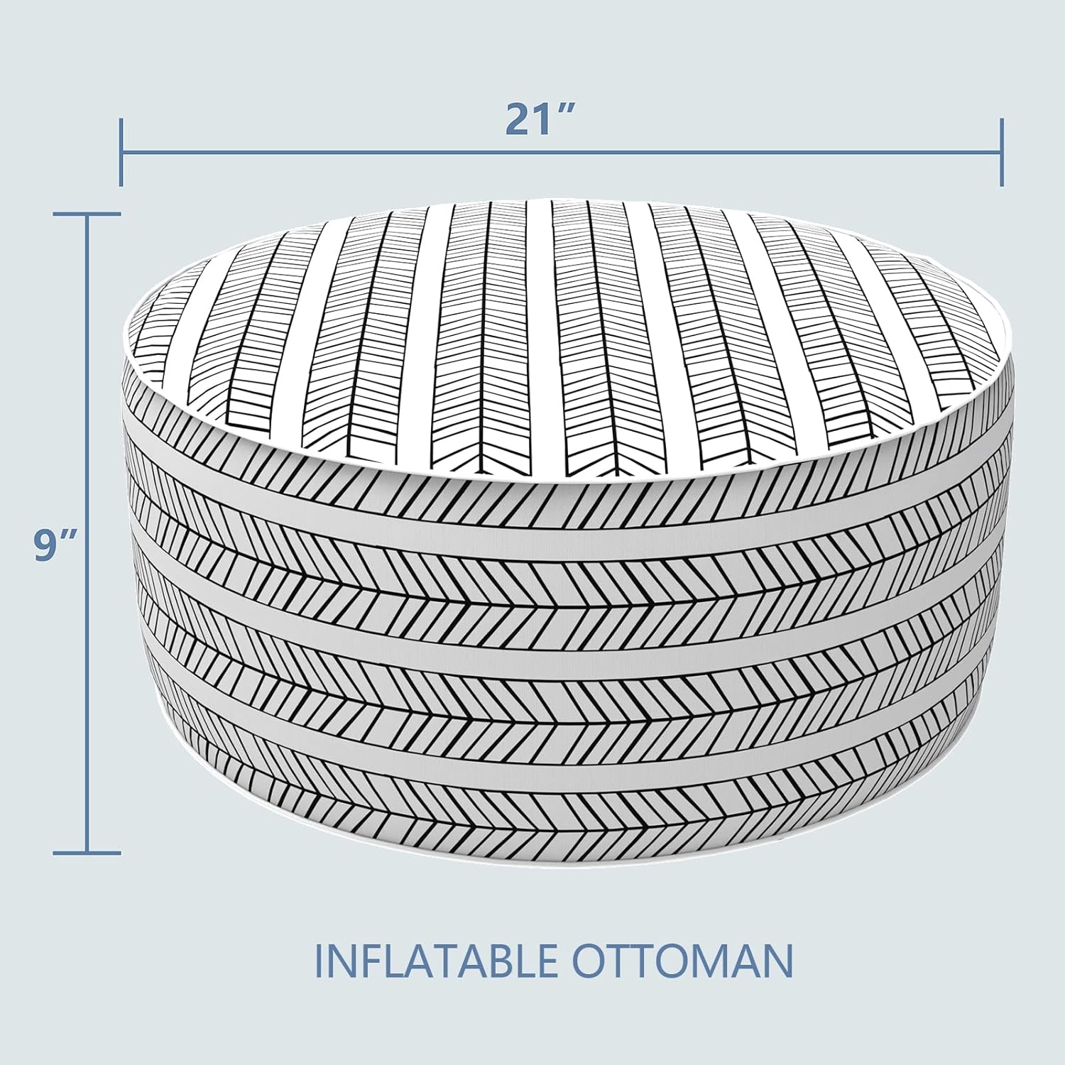 - Package Including: This bundle come with 1 pc indoor outdoor inflatable ottoman measures D21" x H9" (53 x 23cm). Made of durable and soft polyester fabric, sturdy inflatable PVC liner