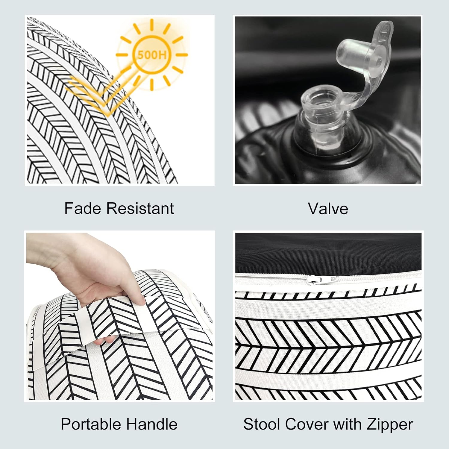 LVTXIII Outdoor/Indoor Inflatable Ottoman, Patio Footrest Stool, Portable Round Ottoman for Patio Garden, Camping or Home, Herringbone Black White