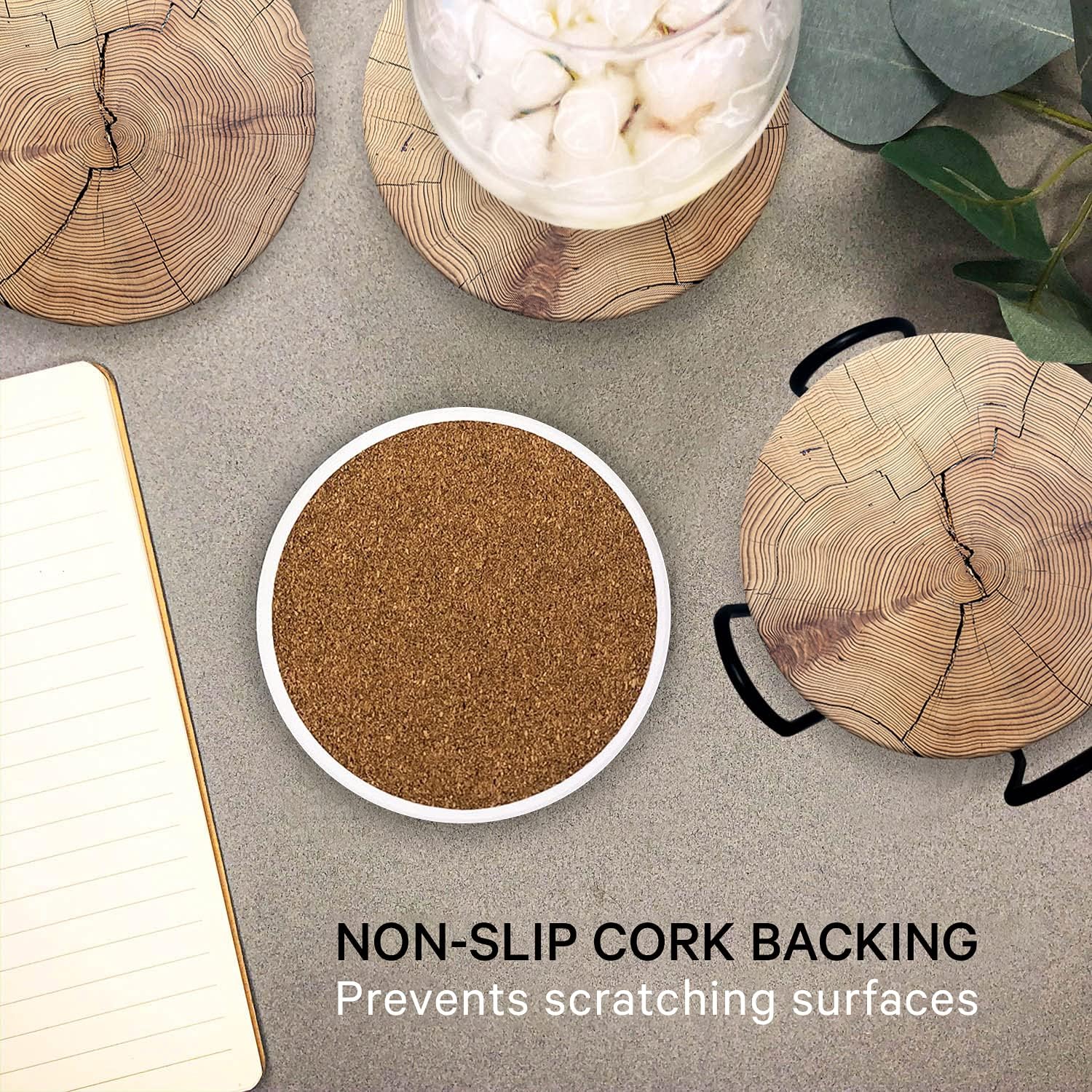 Emerson Coasters for Drinks Absorbent – Natural Stone Drink Coasters Set with Holder, Coasters for Coffee Table, Wooden Tabletop Protection Marble Style – 100% Heavy Duty Set of 6 (Wood)