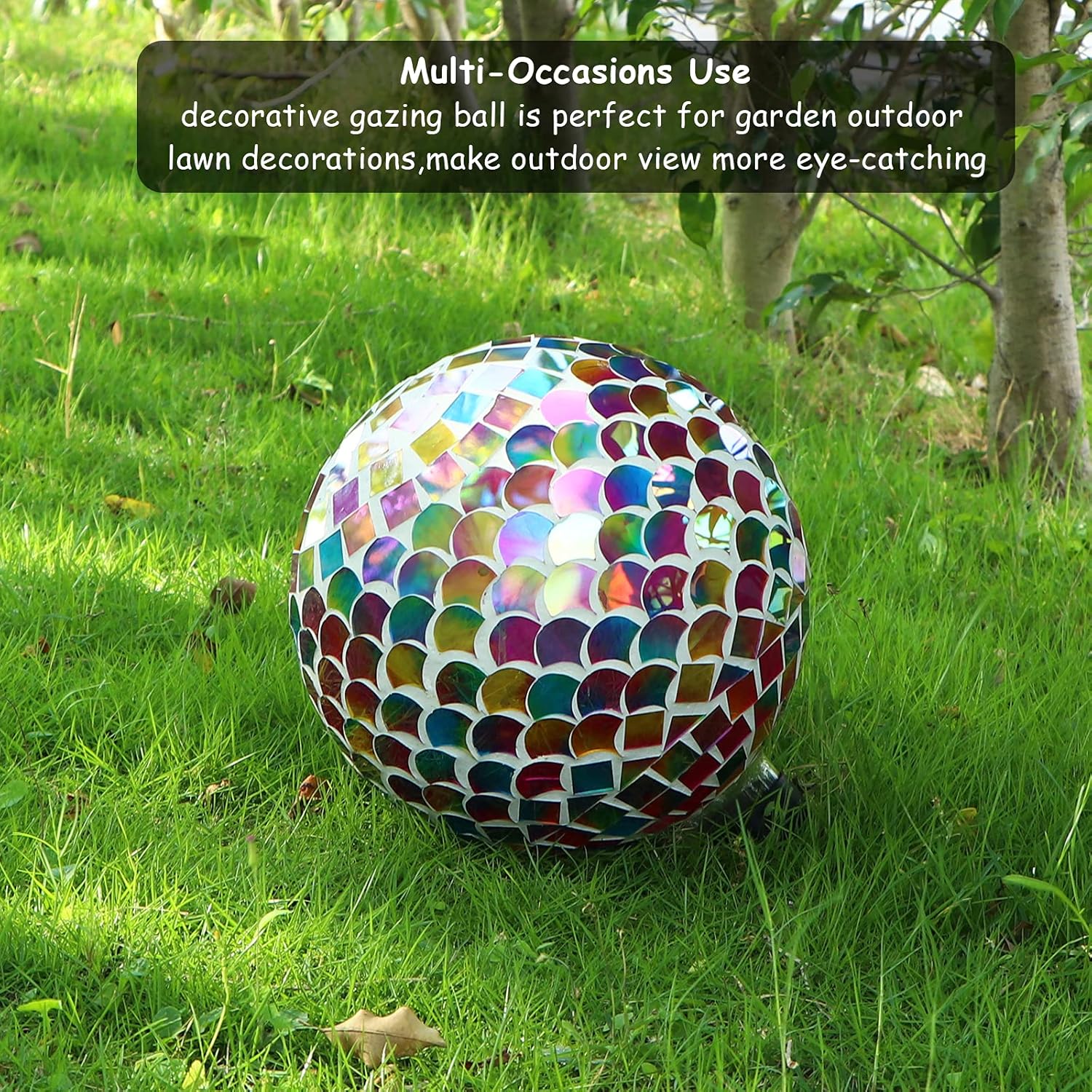 - Outdoor Garden Decor: Gazing globe ball is made from colorful glass pieces in a fan design, suitable for gardens lawn decor. When the sun hits mosaic ball they sparkle little dots of color all over the house and lawn