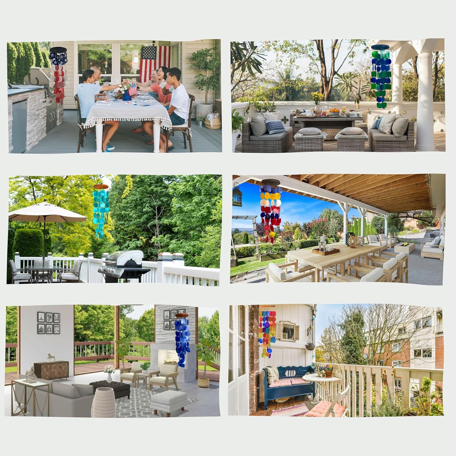 - Unique Wind Chimes: Our colorful outdoor windchimes are strong and long lasting, composed of natural capiz seashells glass, and wood, measuring 27 inches in length.
