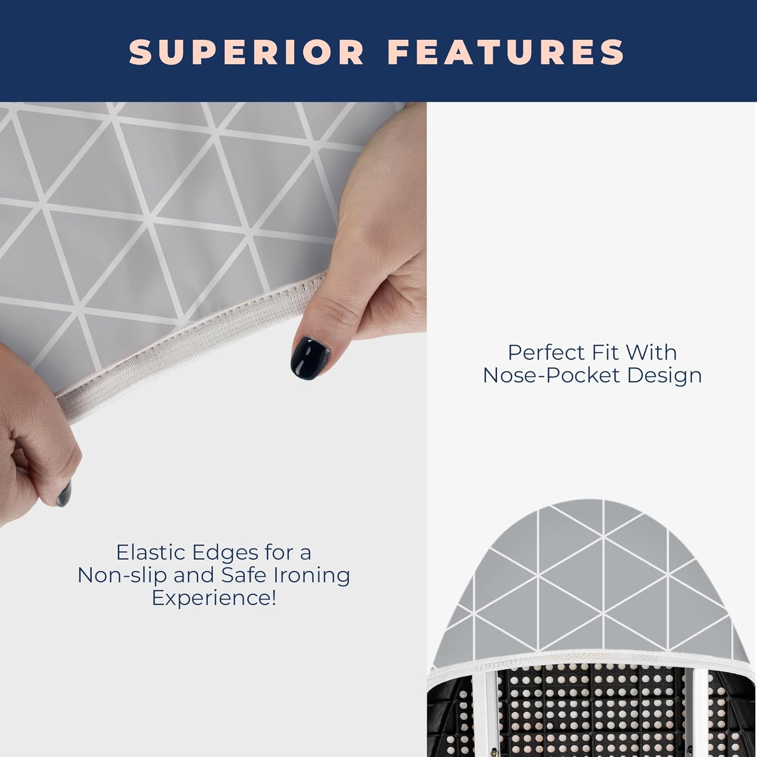 - NOSE POCKET AND ELASTIC EDGES PROVIDE PERFECT NON-SLIP FIT - Elasticized edges and nose pocket design fits the board perfectly. Slipping and the exposure of the edges will be prevented by this. Providing you to have wrinkle free clothes in a shorter time.