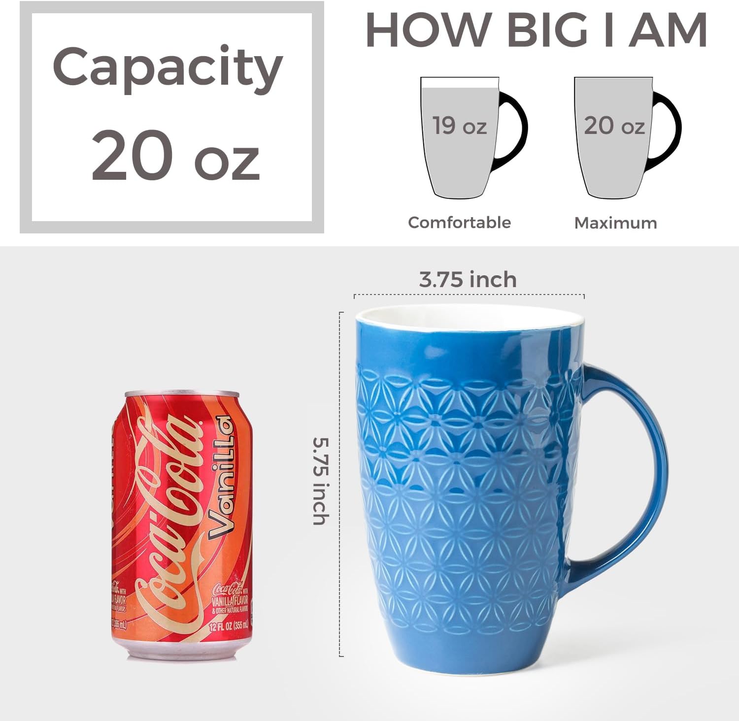 - 20OZ &VERSATILE: These large capacity coffee mug is perfect for daily use at home or in the office. With its big size, you can enjoy a normal cup of beverage without worrying about spills. This mug is not just for coffee - it's also great for tea, soup, beer, cocoa, and more.