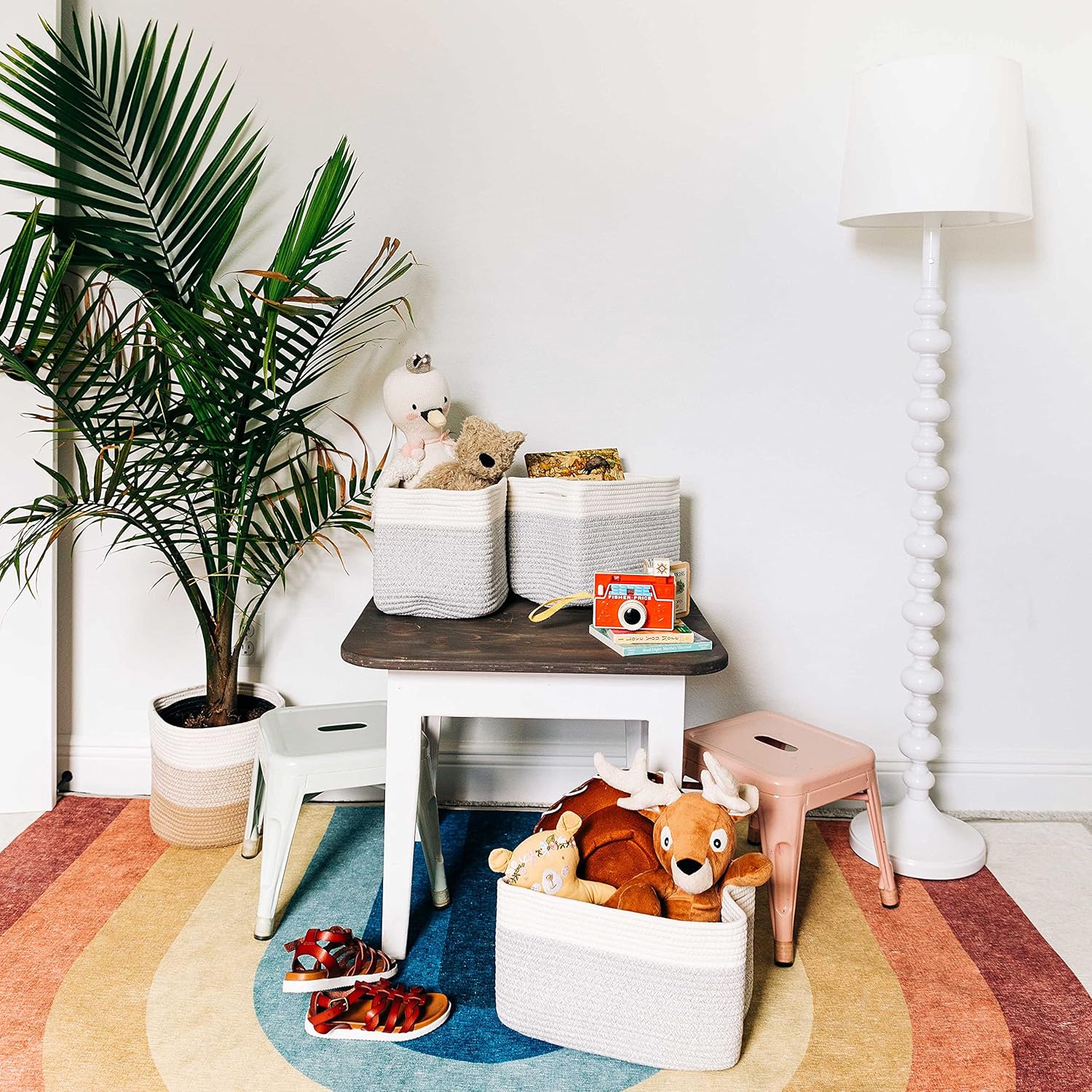 - Vintage Colors to Match Every Style – Charming and stylish these versatile storage organizer bins come in 7 exclusive colors to match your home closet or style including 3-tone gray, blue / off-white, rainbow / off-white, pink / off-white, brown / off-white, gray / black, gray / honey, gray / off-white, honey / off-white, light honey / off-white, black, white and rainbow.