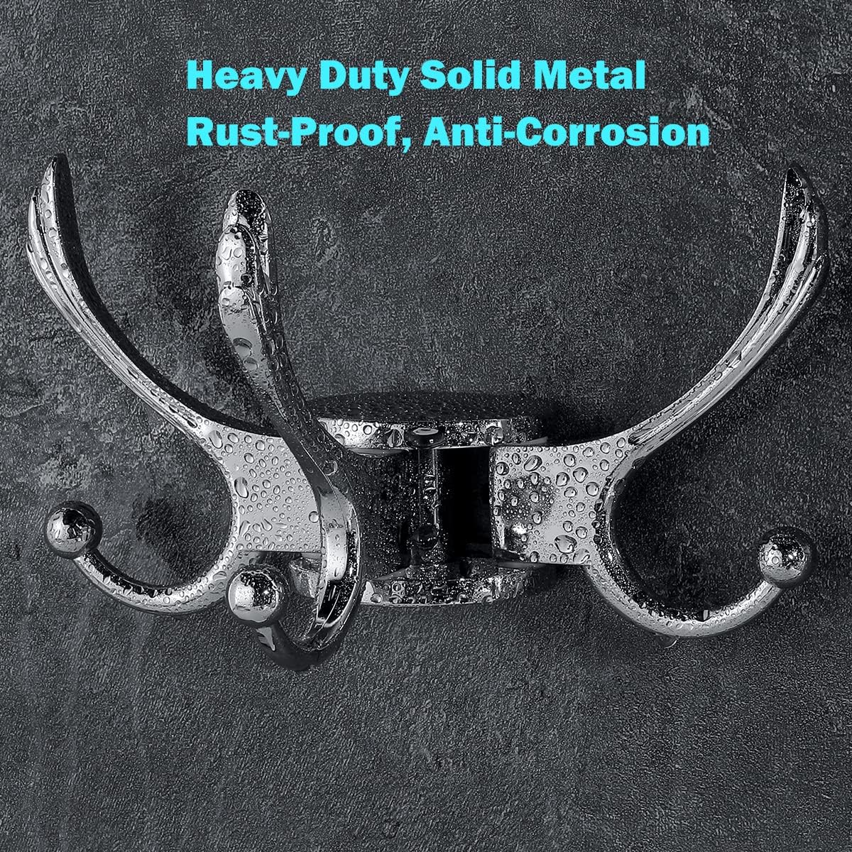 Heavy Duty Swivel Coat Hook Space Saving Towel Rope Hook Wall Mount Triple Swing Arms for RV Bathroom Kitchen Garage,Polished Chrome