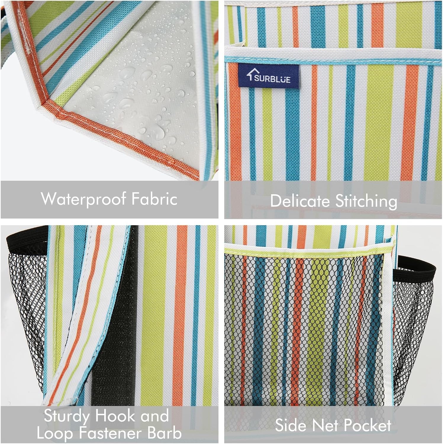 Surblue Bedside Caddy Hanging Bed Organizer Storage Bag Pocket for Bunk and Hospital Beds, College Dorm Rooms Baby Bed Rails, Camp 8 Pockets, (Large, Green Stripe)