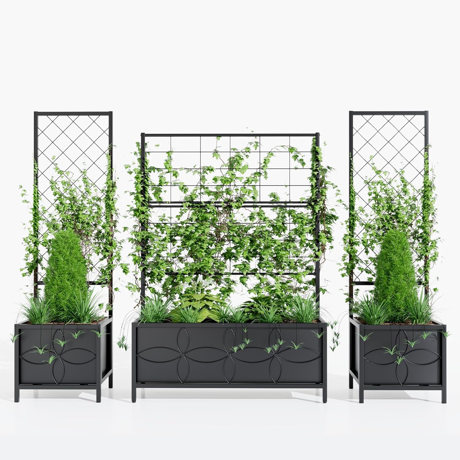 - This planter with trellis is made of a strong carbon steel base. It's sturdy and solid for long time and durable usage. Moisture Resistant,Maintain beauty and performance.