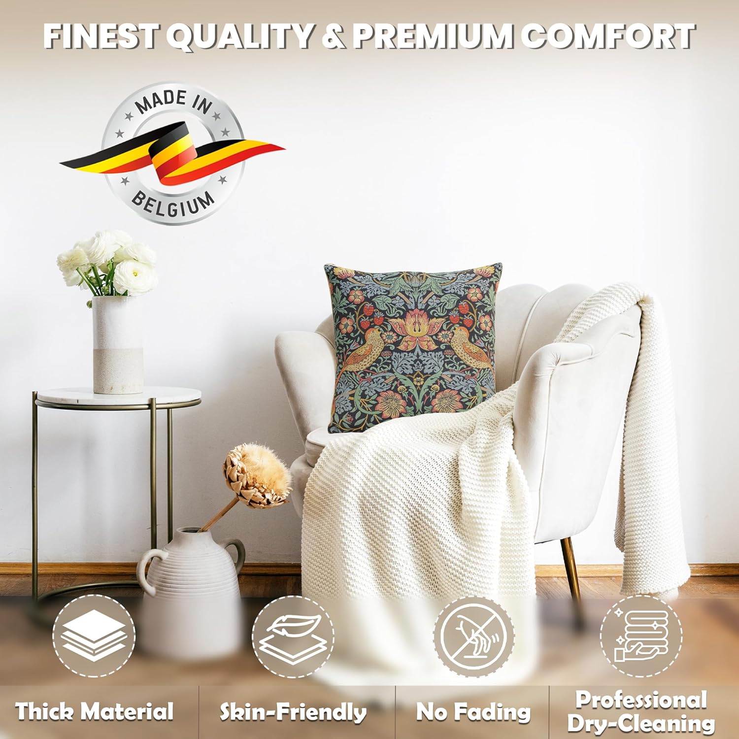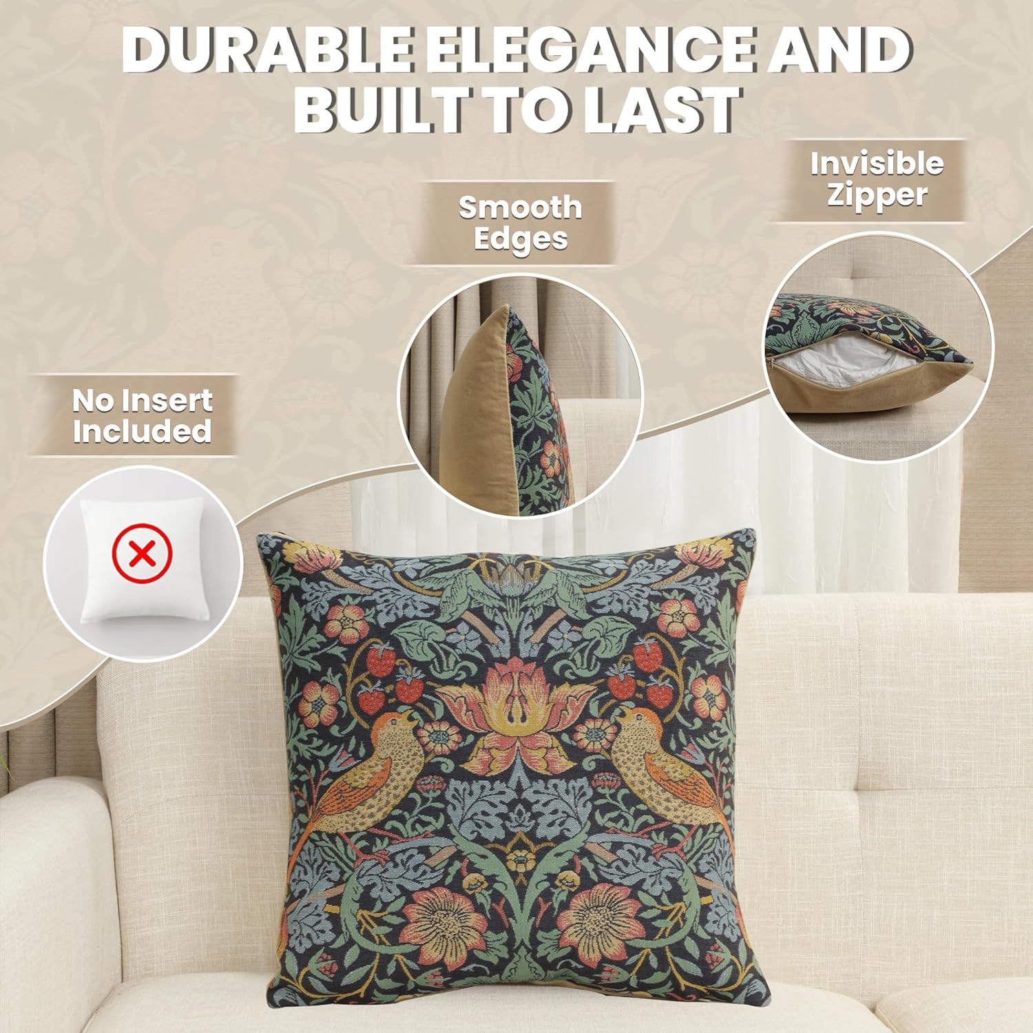 - Exclusive Design Excellence: The decorative pillow covers are made of high-quality jacquard woven fabric, 100% cotton for extreme comfort and durability. The designs of these William Morris pillow covers are woven with precision using the most vibrant colors. The zippers are hidden and overlock stitch seams create an appearance of sophistication while providing durability for any home decor