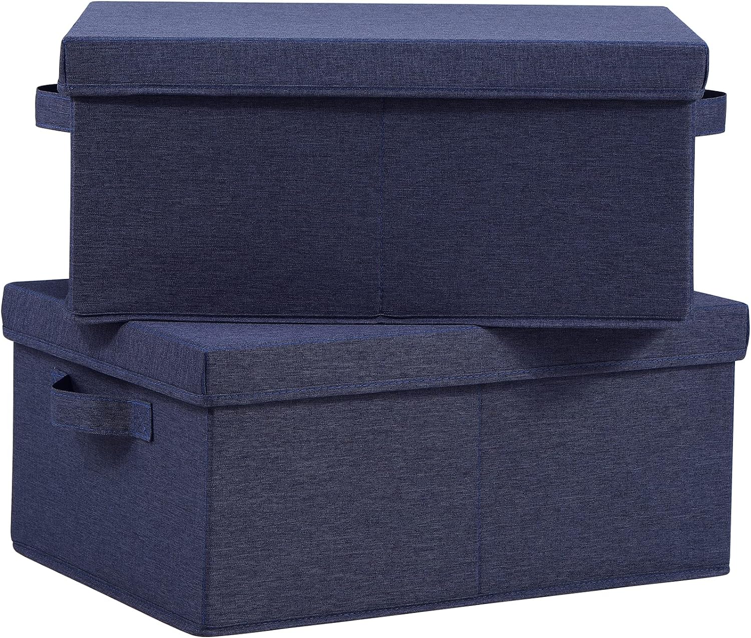 HOONEX Foldable Storage Bins with Lids, Pack of 2, Storage Boxes with 2 Carrying Handles and Heavy Cardboard, 16.5" L x 11.8" W x 7.5" H for Shoes, Clothes, Blue