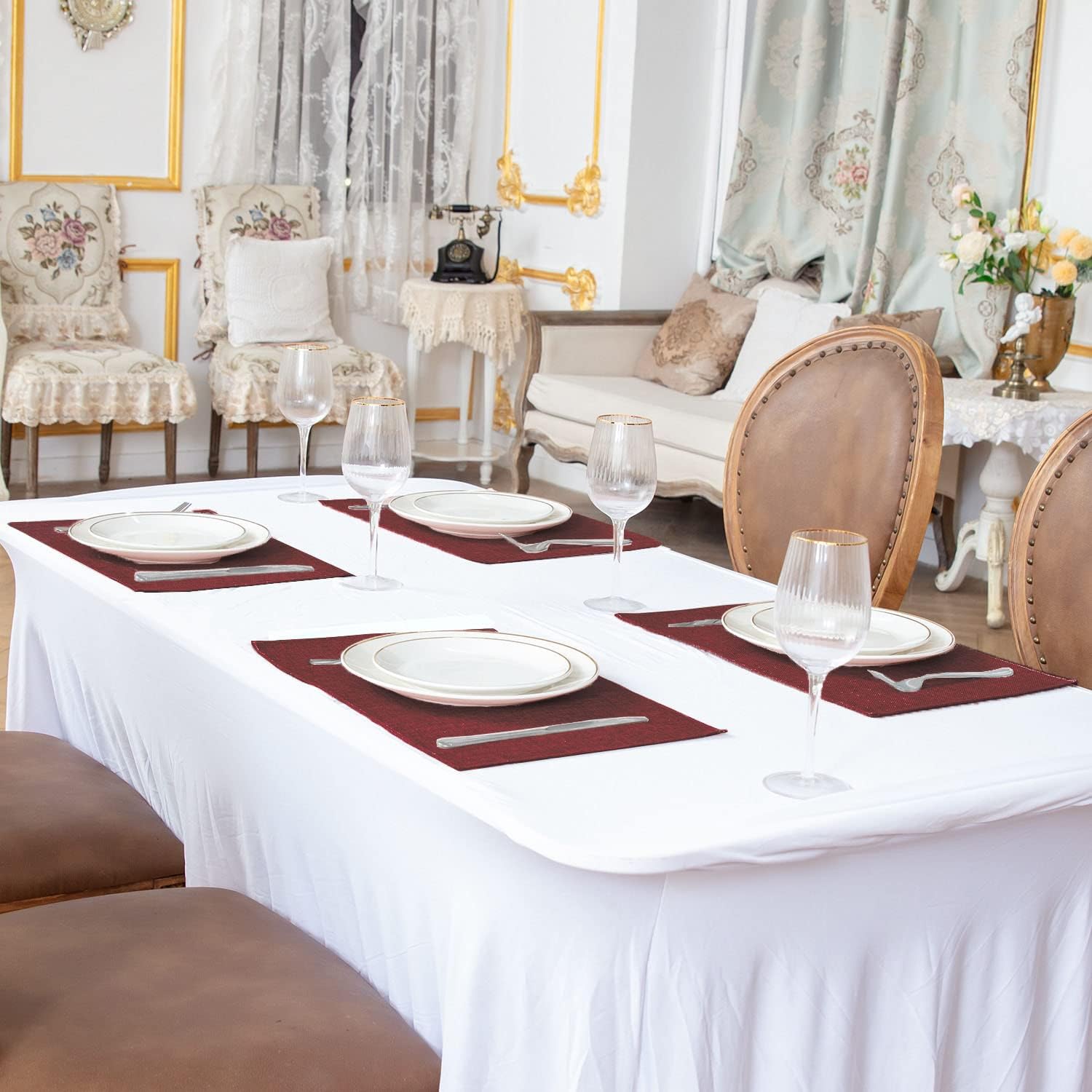 Cloth Placemats Set of 8, Linen Type Fabric Placemats Machine Washable Heat Resistant Placemats Wrinkle Free Thick Polyester Kitchen Place Mats for Dining Table (Burgundy)