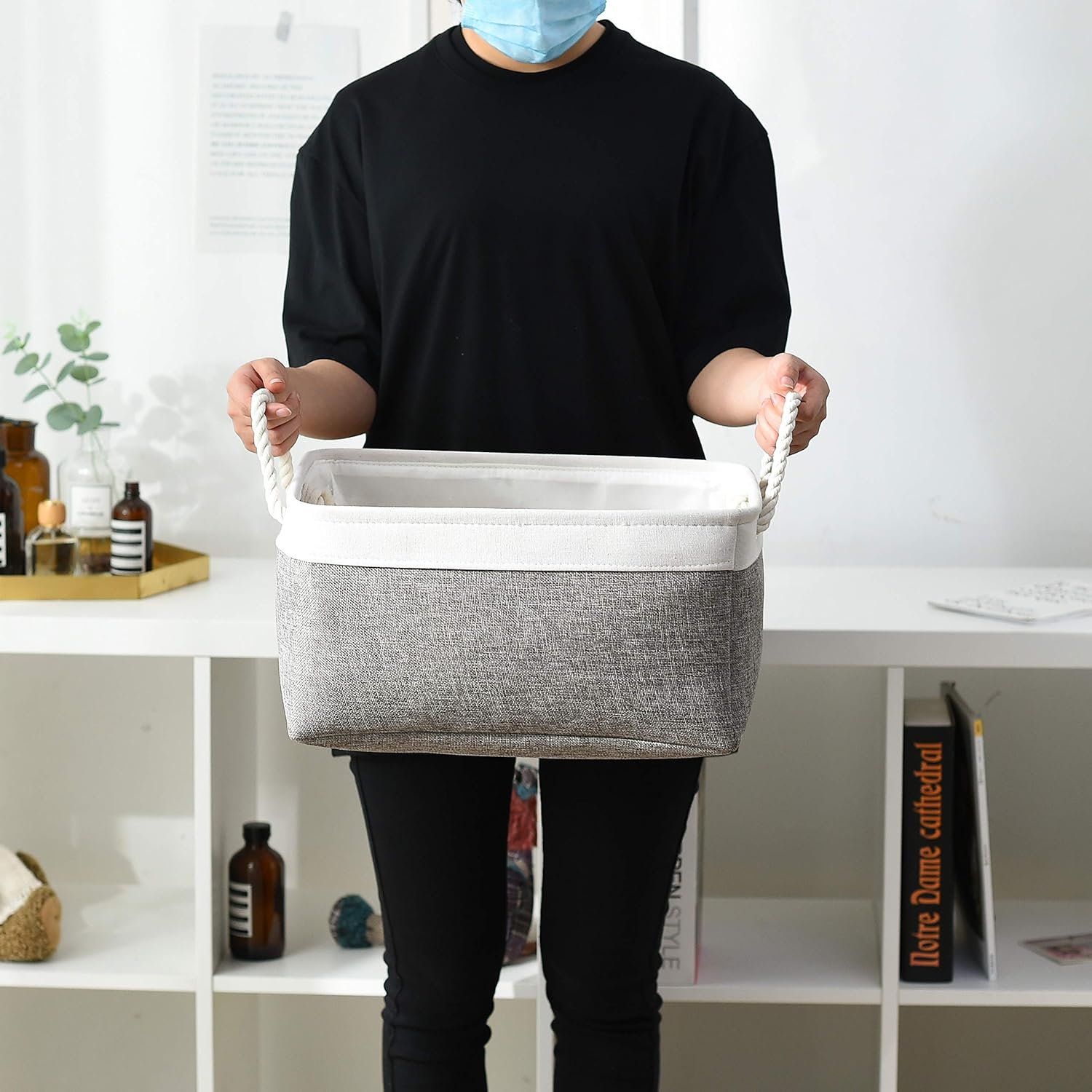 - High quality: The outer material of the storage box is made of imitation linen, with thickened EVA in the middle, refusing to sag, high quality can keep the storage box firm and stylish. The lining is thin cotton, easy to clean, just wipe with a wet sponge or cloth. The handle material is made of cotton and linen handle, wide and not strangled hands.