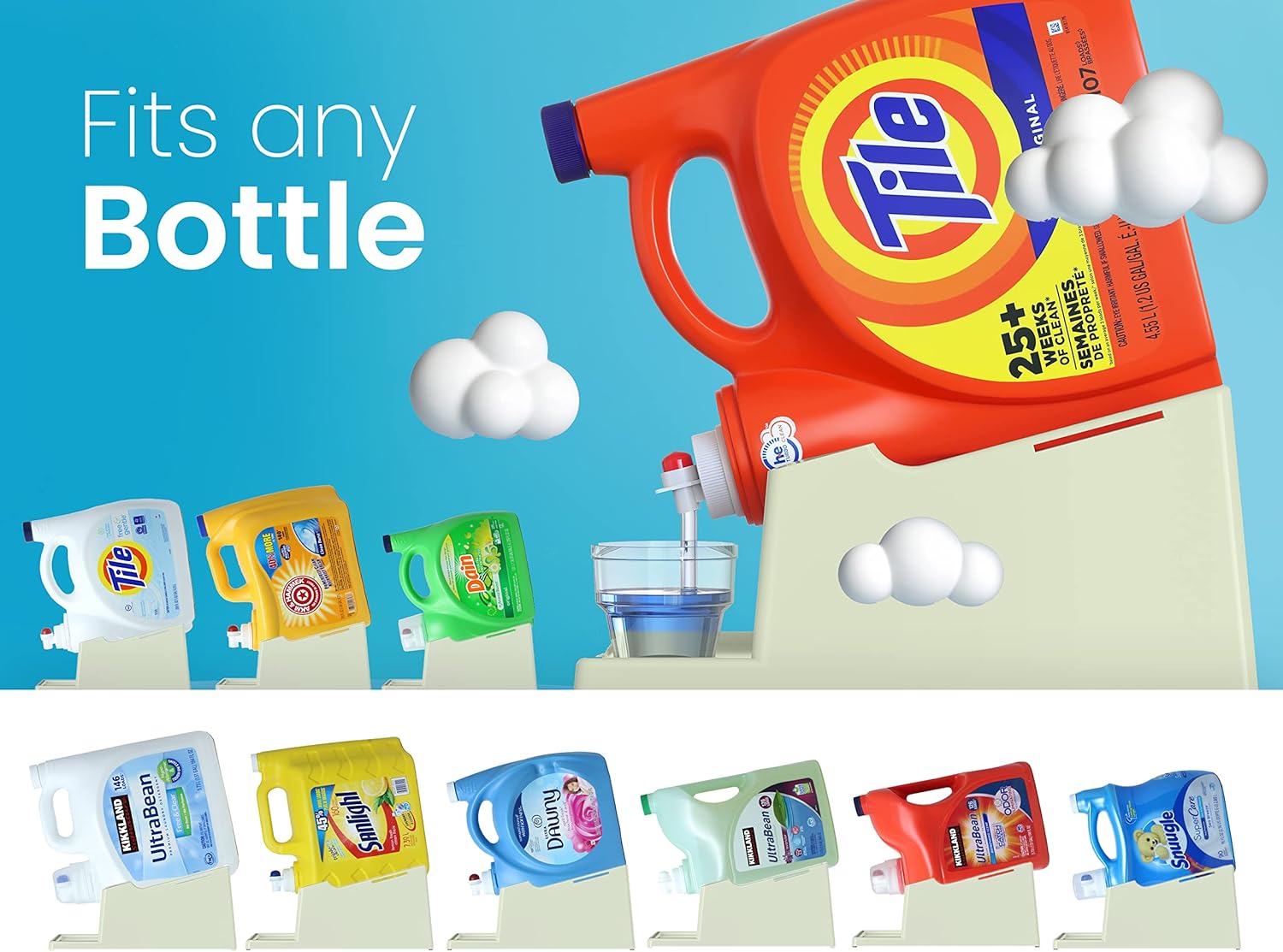 - [Versatile Fit:] The liquid laundry detergent holder station's optimal size (7.9"L x 12.2"W x 5.5"H) accommodates various bottle sizes, providing a perfect fit for most detergent containers without taking up too much space. (Laundry Soap, Cup, and Bottles NOT Included)