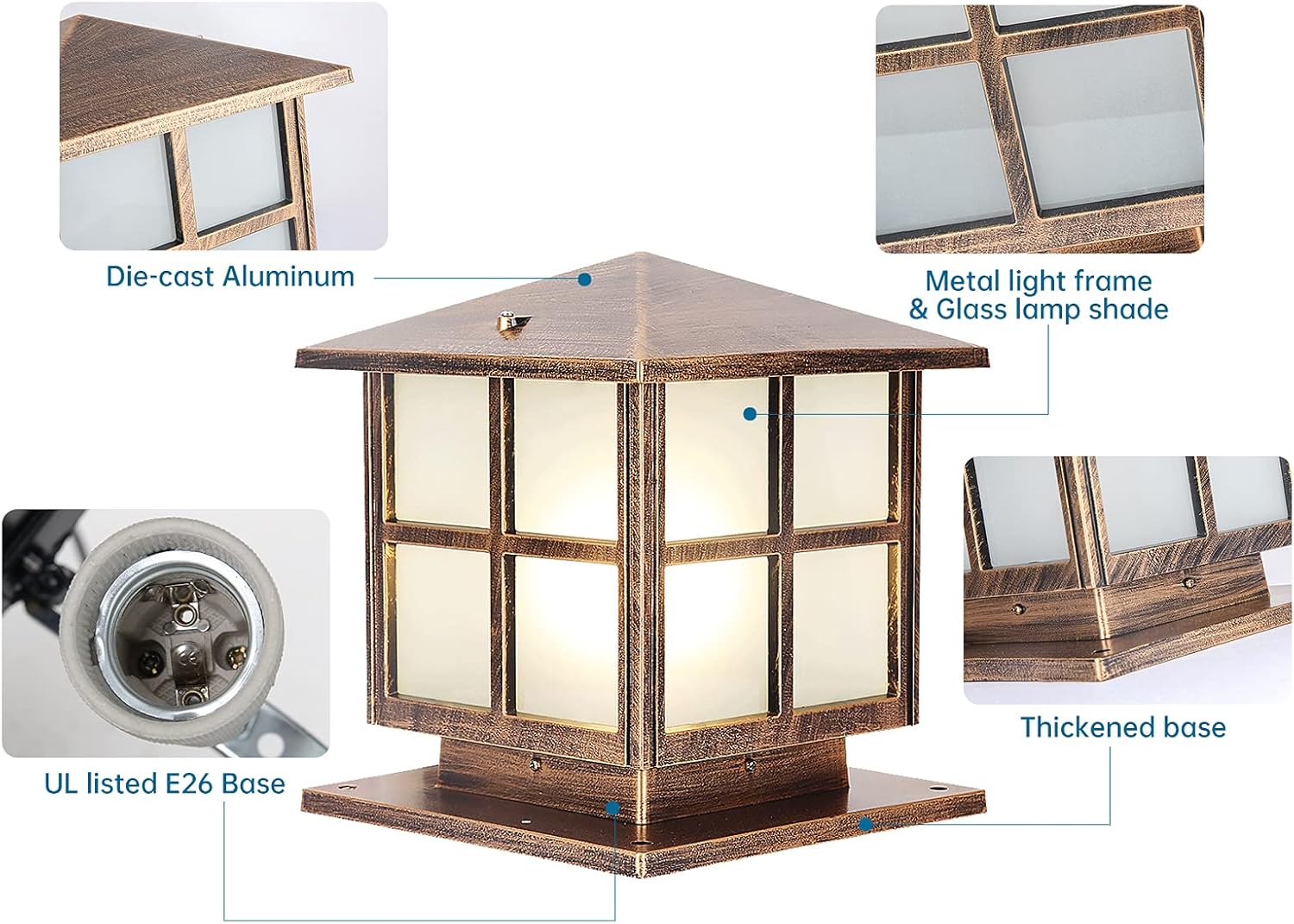 - ☀ TEEMING WITH TRADITIONAL STYLE: This outdoor Column Lamp is made of sturdy cast aluminum and finished with firm waterproof coating, resulting in anti-corrosion, anti-rust. It is IP65 waterproof, can be used in outdoor environment without corrosion for years.</br>