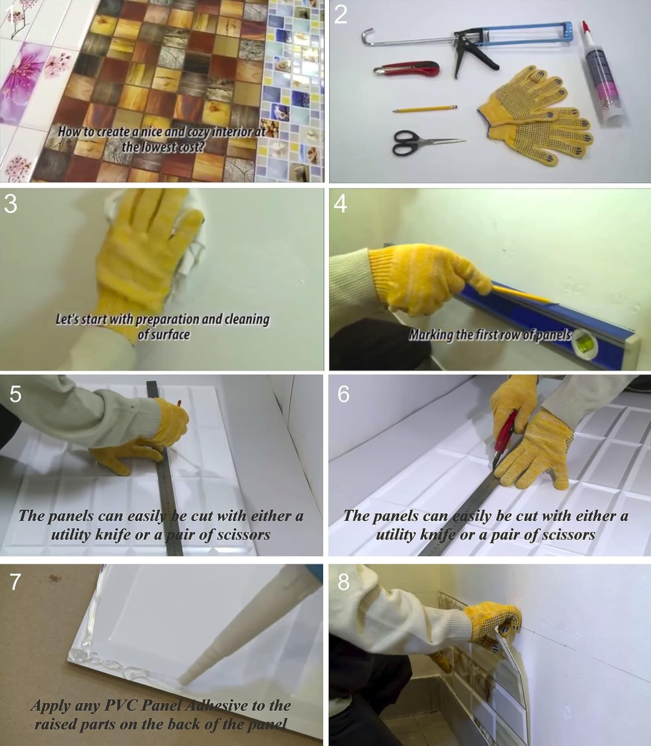 - Pack of 10: total covered area is approximately 53 square feet; SUPER DURABLE: high quality PVC thermoplastic panel. No need for filling nail-holes, chips, cracks, smoothing the surface or sealing with a primer - use the panels to create the right atmosphere using only an adhesive.