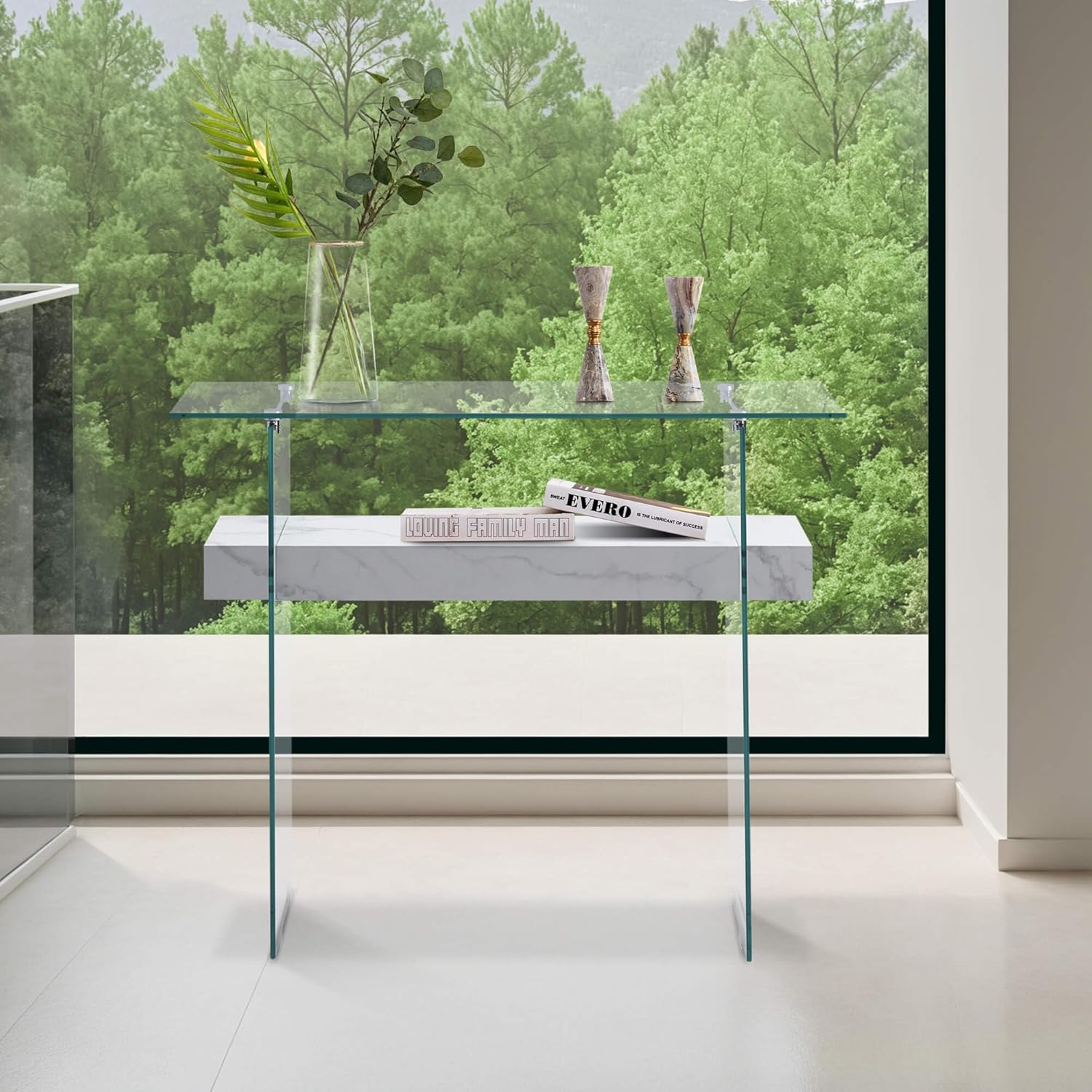ivinta Glass Entry Table with Storage, 39.4" Modern Console Table for Living Room, Foyer, Hallway, Bedroom 5101 (White)