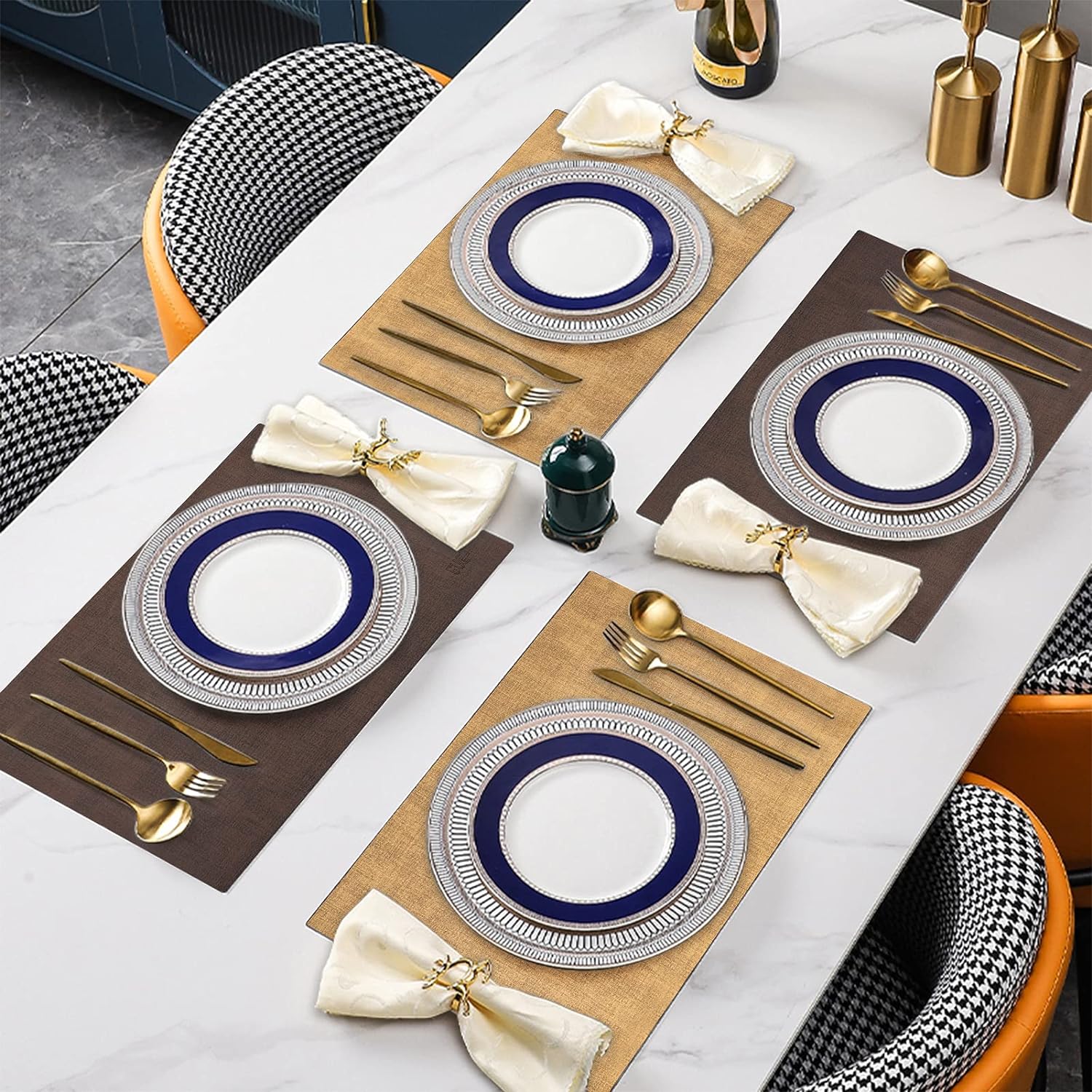 - DURABLE AND WASHABLE - The set contains 6 pieces heavy-duty placemats with exquisite edge treatment are durable and strong enough to withstand daily use, holding up wash after wash. It can easy to clean by hand if there are any juice, oil, or other liquid spilling on the table mats and without showing signs of wear after daily use.